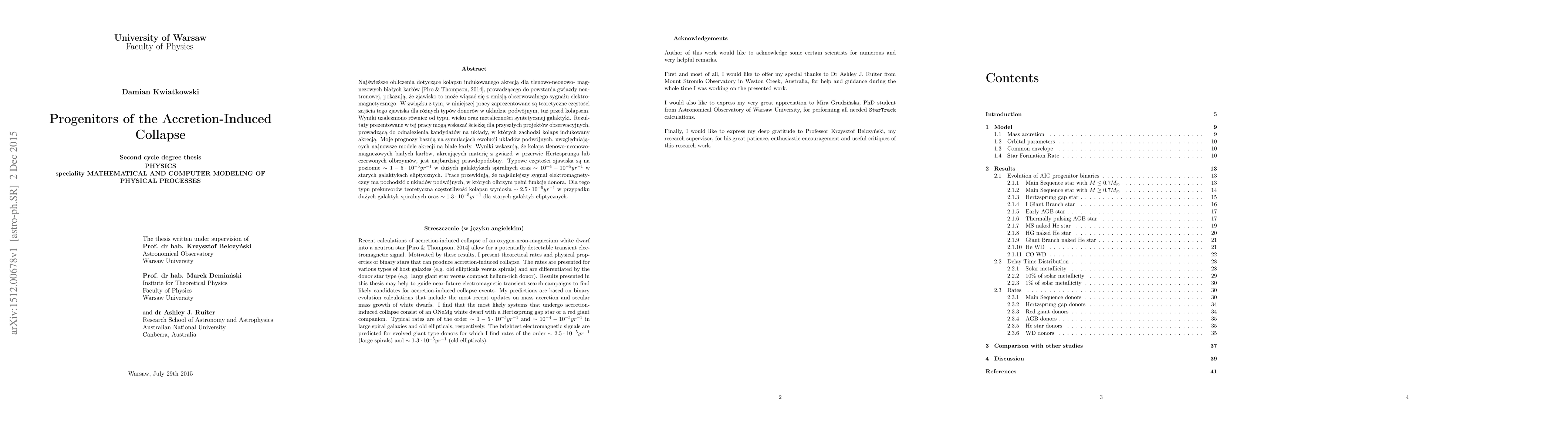 Recent calculations of accretion-induced collapse of an oxygen-neon-magnesium white dwarf into a neutron star [Piro & Thompson 2014] allow for a potentially detectable transient electromagnetic signal. Motivated by these results, I present theoretical rates and physical properties of binary stars that can produce accretion-induced collapse. The rates are presented for various types of host galaxies (e.g. old ellipticals versus spirals) and are differentiated by the donor star type (e.g. large giant star versus compact helium-rich donor). Results presented in this thesis may help to guide near-future electromagnetic transient search campaigns to find likely candidates for accretion-induced collapse events. My predictions are based on binary evolution calculations that include the most recent updates on mass accretion and secular mass growth of white dwarfs. I find that the most likely systems that undergo accretion-induced collapse consist of an ONeMg white dwarf with a Hertzsprung gap star or a red giant companion. Typical rates are of the order ~1-5 x 10^-5 1/yr and ~10^-4-10^-5 1/yr in large spiral galaxies and old ellipticals, respectively. The brightest electromagnetic signals are predicted for evolved giant type donors for which I find rates of the order ~2.5 x 10^-5 1/yr (large spirals) and ~1.3 x 10^-5 1/yr (old ellipticals).