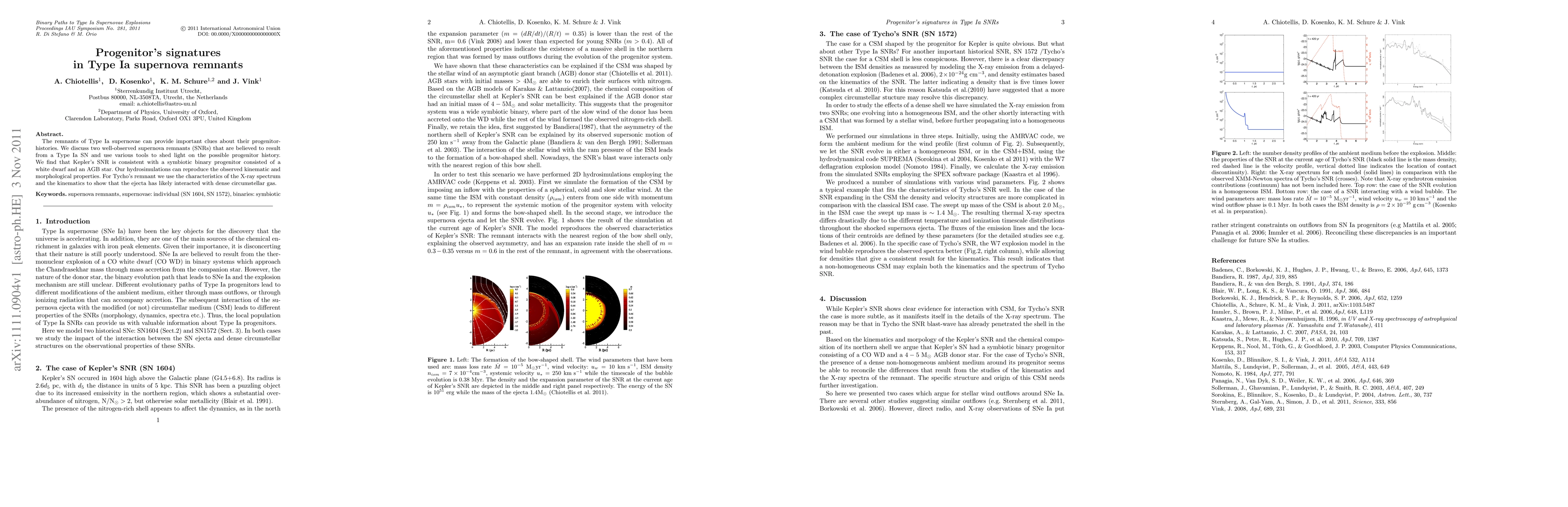 The remnants of Type Ia supernovae can provide important clues about their progenitor-histories. We discuss two well-observed supernova remnants (SNRs) that are believed to result from a Type Ia SN and use various tools to shed light on the possible progenitor history. We find that Kepler's SNR is consistent with a symbiotic binary progenitor consisted of a white dwarf and an AGB star. Our hydrosimulations can reproduce the observed kinematic and morphological properties. For Tycho's remnant we use the characteristics of the X-ray spectrum and the kinematics to show that the ejecta has likely interacted with dense circumstellar gas.