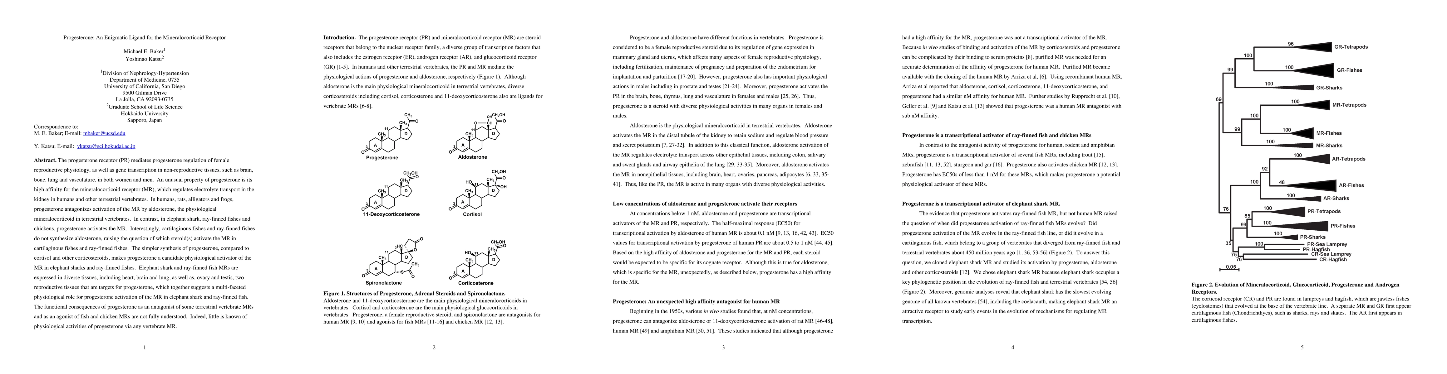 This paper explores progesterone's dual role as both an antagonist and agonist of the mineralocorticoid receptor (MR) across different vertebrates, highlighting its potential physiological functions in diverse tissues and species, particularly in fish and chickens where it may activate the MR. The study underscores the need for further research to understand progesterone's broader physiological roles via MR.