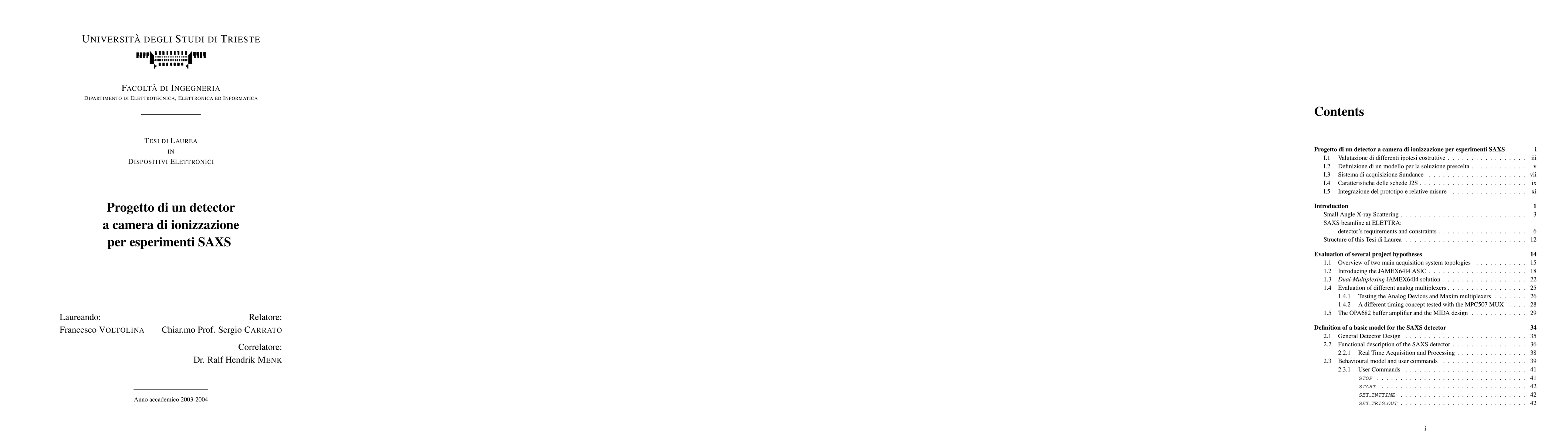 The work presented in this Tesi di Laurea arises from a collaboration between the IPL (Image Processing Laboratory) of the Dipartimento di Elettrotecnica, Elettronica ed Informatica (DEEI) at the University of Trieste and the Instrumentation and Detector Laboratory belonging to the ELETTRA Synchrotron Light Source of Trieste. Under the European Contract ERBFMGECT 980104 a project was active at ELETTRA with the objective to improve facilities for time resolved small angle X-ray scattering (SAXS) experiments within Europe. Partners of the project were, together with ELETTRA, other large scale facilities like the HASYLAB (Hamburger Synchrotron, Germany), the CCLRC (Daresbury Laboratory, UK), the ESRF (European Synchrotron Radiation Facility in Grenoble, France) and the University of Siegen (Germany). In particular the latest half of the time spent working on this project was based in the Arbeitsgruppe Detektorphysik und Elektronik belonging to the Faculty of Physics at the University of Siegen.