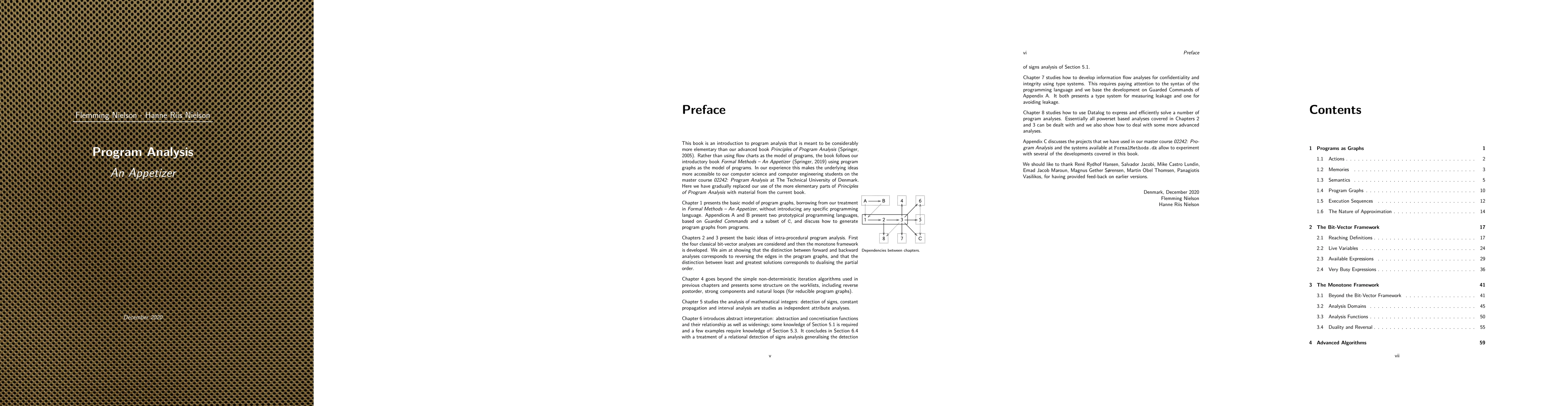 This book provides an elementary introduction to program analysis using program graphs as models, aiming to make the concepts more accessible for master's level students. It serves as a precursor to the more advanced "Principles of Program Analysis" and is designed to complement the course 02242: Program Analysis at The Technical University of Denmark.