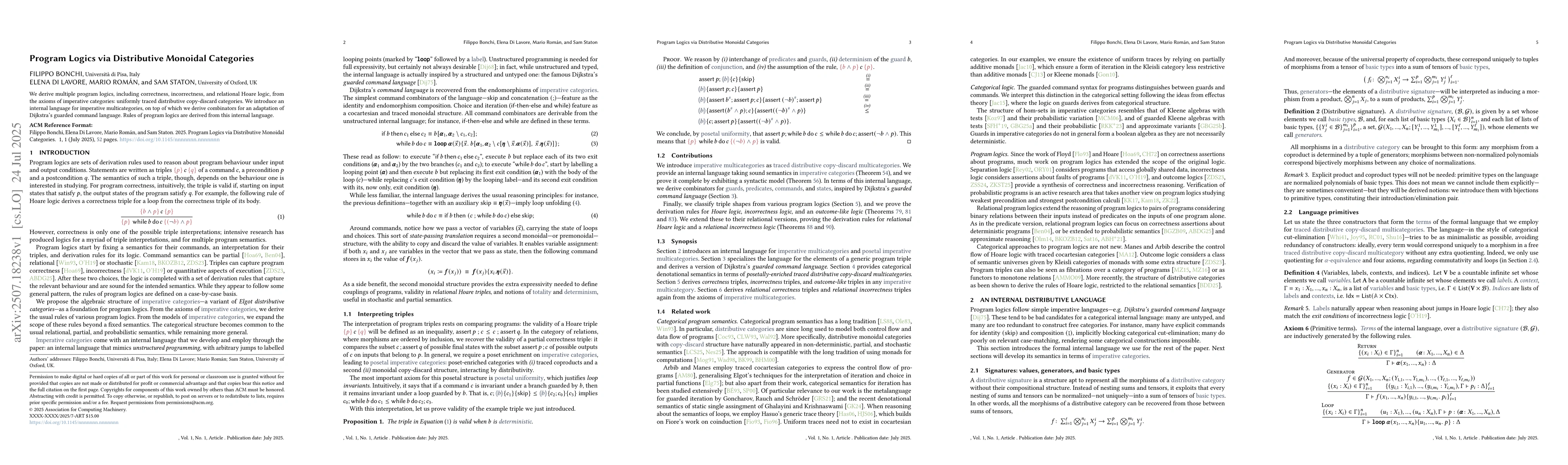 This research paper presents a novel approach to deriving various program logics like correctness, incorrectness, and relational Hoare logic from the axioms of imperative categories. It introduces an internal language for imperative multicategories, leading to combinators for a guarded command language adaptation, with program logic rules derived from this language.