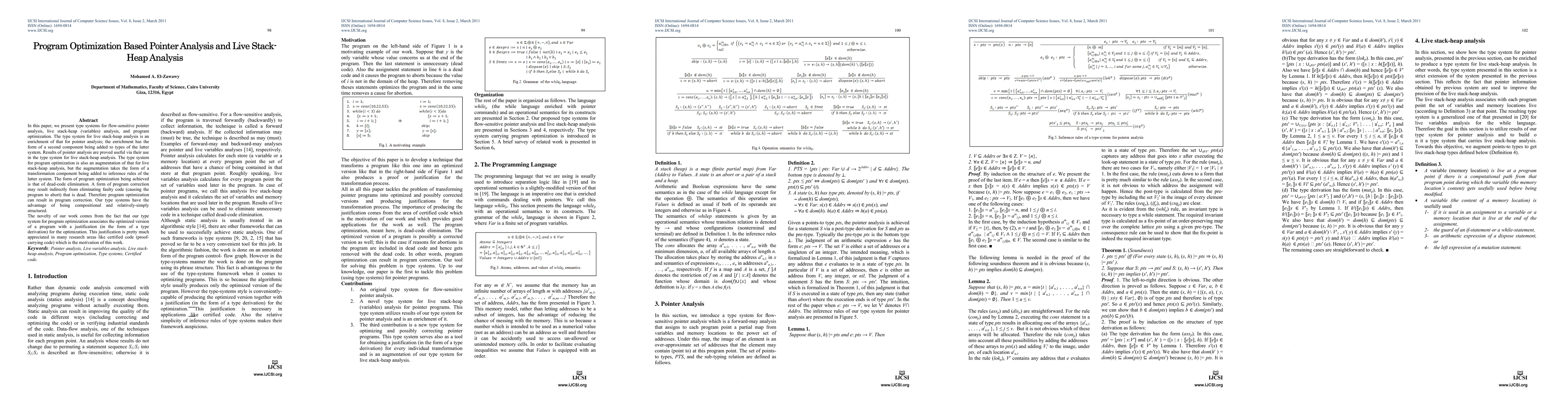 This paper introduces type systems for pointer analysis, live stack-heap analysis, and program optimization, achieving dead-code elimination and potentially program correction. The key novelty is that the optimization process is justified by a type derivation, aligning with certified code research.