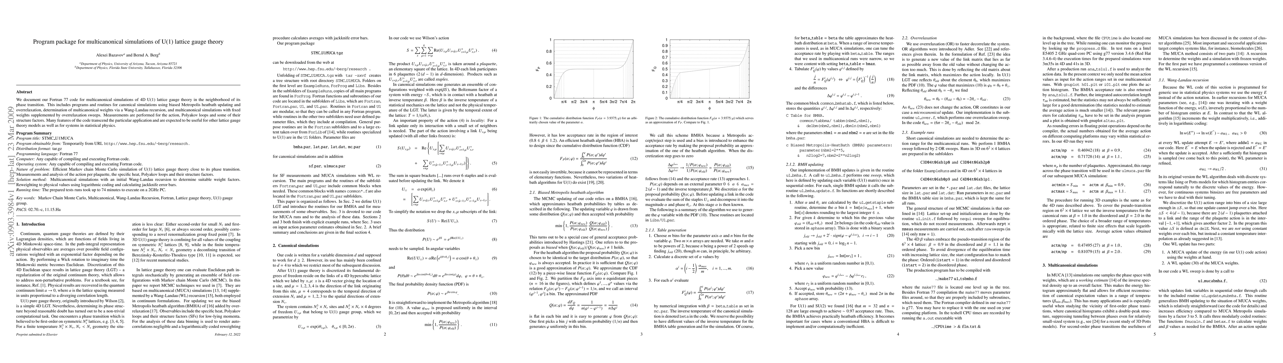 This paper presents a Fortran 77 code for multicanonical simulations of 4D U(1) lattice gauge theory, featuring methods for canonical simulations and multicanonical weight determination, with applications extending beyond the specific model to other lattice gauge theories and statistical physics systems.