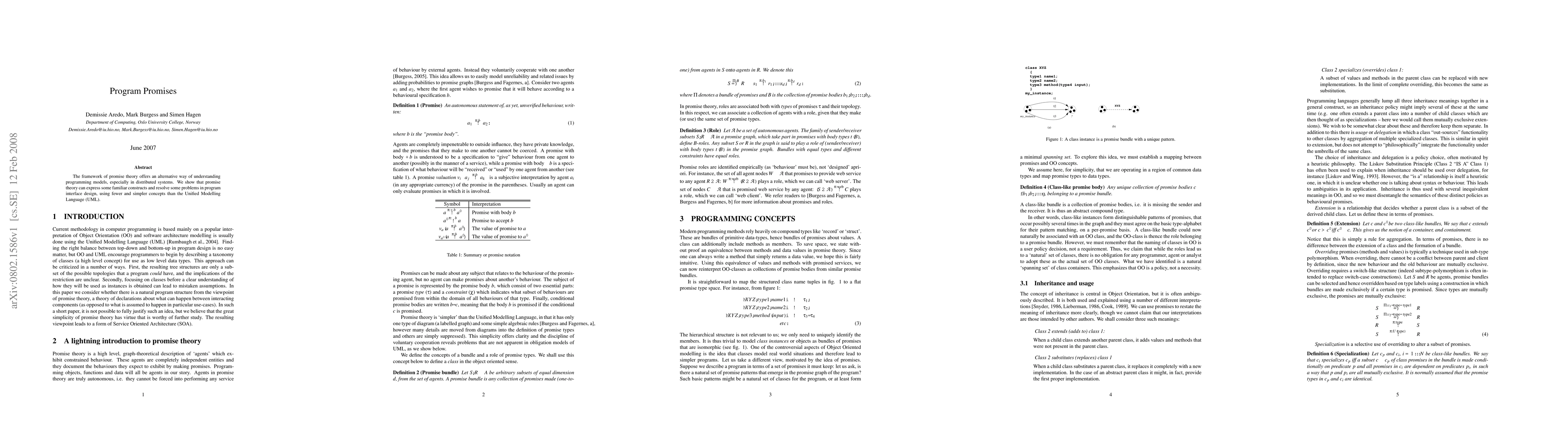 The framework of promise theory offers an alternative way of understanding programming models, especially in distributed systems. We show that promise theory can express some familiar constructs and resolve some problems in program interface design, using fewer and simpler concepts than the Unified Modelling Language (UML).