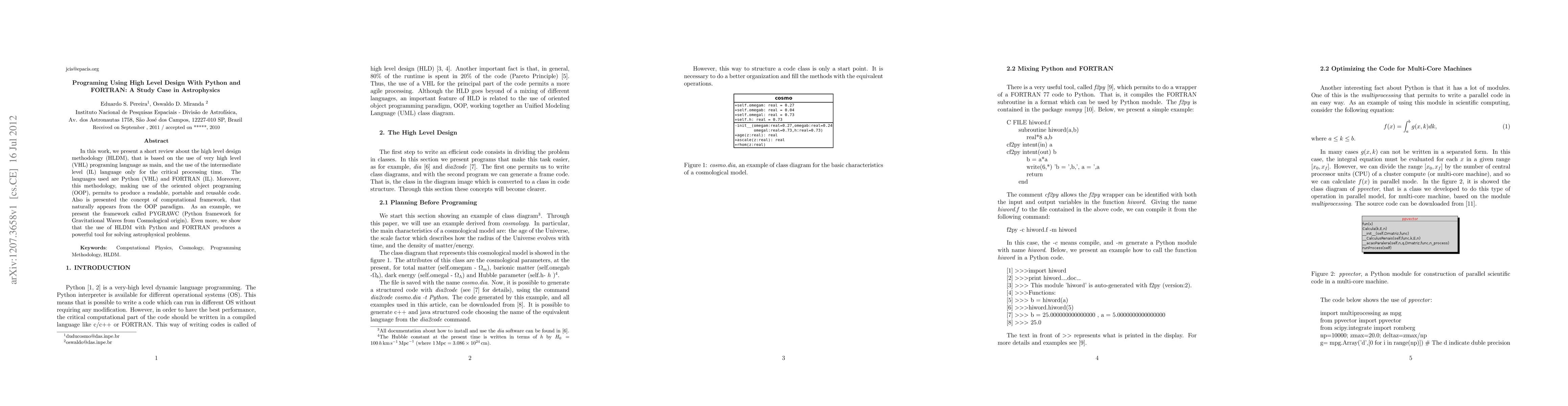 This paper explores a high-level design methodology (HLDM) using Python and FORTRAN in astrophysics, emphasizing readable, portable, and reusable code through object-oriented programming. The study showcases the PYGRAWC framework and demonstrates its effectiveness in solving astrophysical problems.