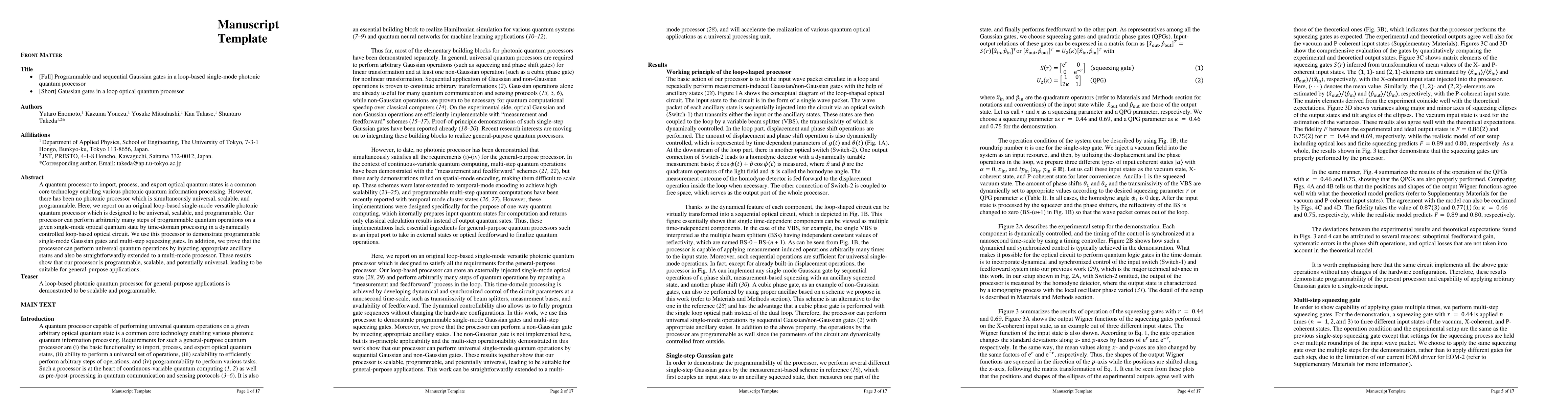 This paper introduces a novel loop-based photonic quantum processor capable of universal, scalable, and programmable quantum operations on single-mode optical states through time-domain processing. The processor demonstrates programmable Gaussian and multi-step squeezing gates, proving its potential for general-purpose quantum information processing.
