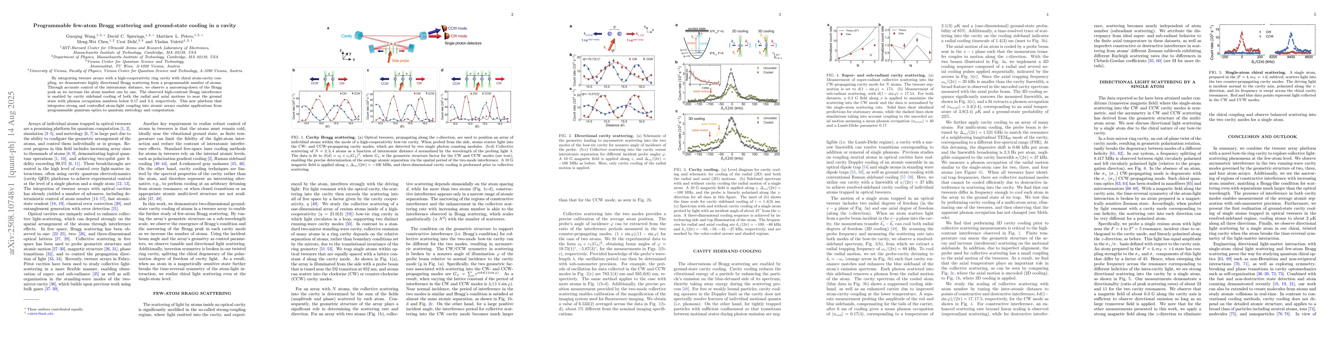 By integrating tweezer arrays with a high-cooperativity ring cavity with chiral atom-cavity coupling, we demonstrate highly directional Bragg scattering from a programmable number of atoms. Through accurate control of the interatomic distance, we observe a narrowing-down of the Bragg peak as we increase the atom number one by one. The observed high-contrast Bragg interference is enabled by cavity sideband cooling of both the radial and axial motions to near the ground state with phonon occupation numbers below 0.17 and 3.4, respectively. This new platform that integrates strong and controlled atom-light coupling into atomic arrays enables applications from programmable quantum optics to quantum metrology and computation.
