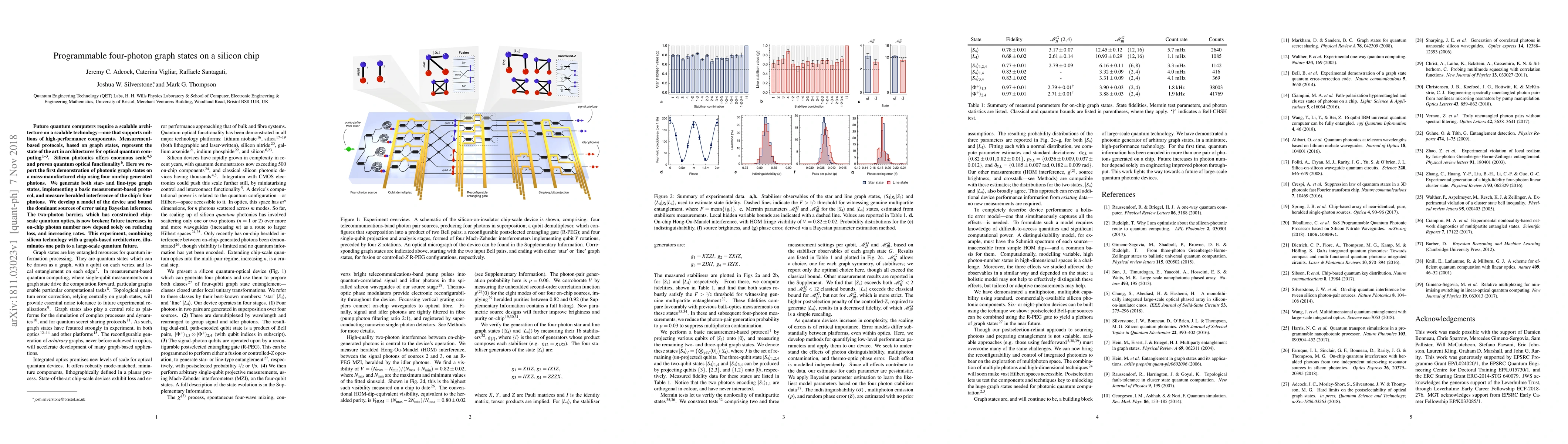 This paper demonstrates the generation of four-photon graph states on a silicon photonic chip, breaking the two-photon barrier and paving the way for scalable quantum computing. The authors implement a basic measurement-based protocol and measure interference, showing a promising path towards large-scale quantum architectures.