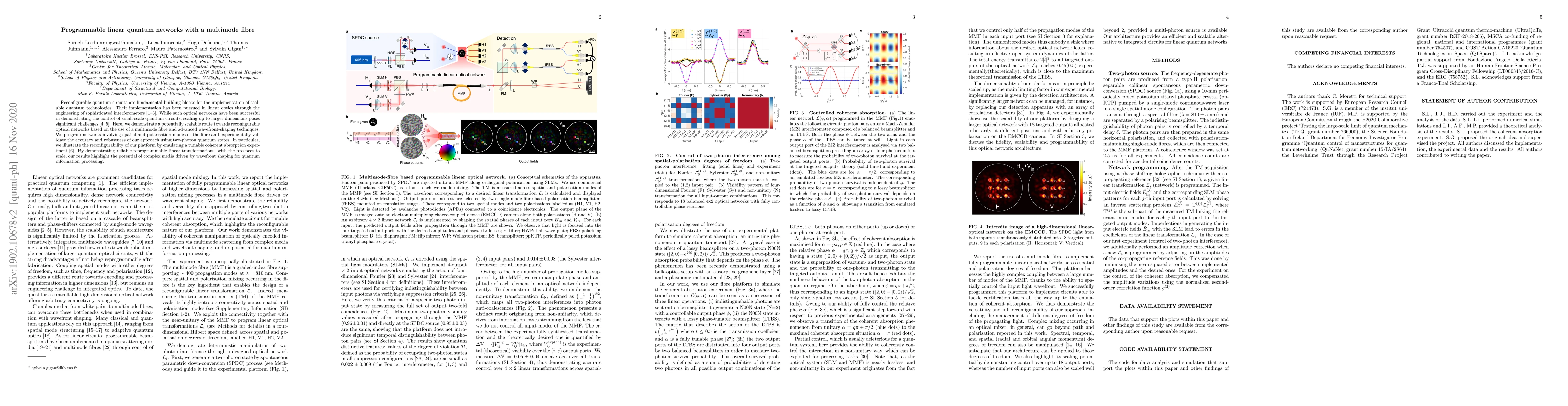 This paper demonstrates a scalable approach for reconfigurable quantum circuits using multimode fibres and wavefront-shaping techniques, showing accurate and robust control of two-photon quantum states and the potential for large-scale quantum information processing. The study validates the platform's reconfigurability through a tunable coherent absorption experiment.