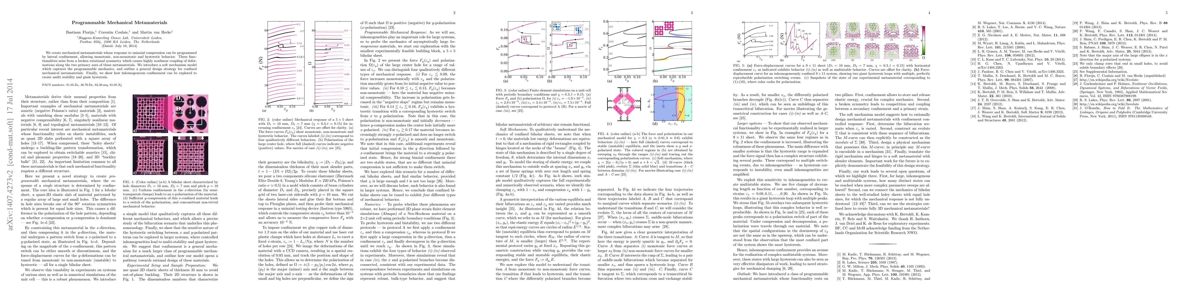 This paper introduces programmable mechanical metamaterials that exhibit monotonic, non-monotonic, and hysteretic behavior under uniaxial compression, achieved through lateral confinement and broken rotational symmetry. The study proposes a soft mechanism model and a design strategy for these metamaterials, highlighting the potential for creating multi-stability and giant hysteresis through inhomogeneous confinement.
