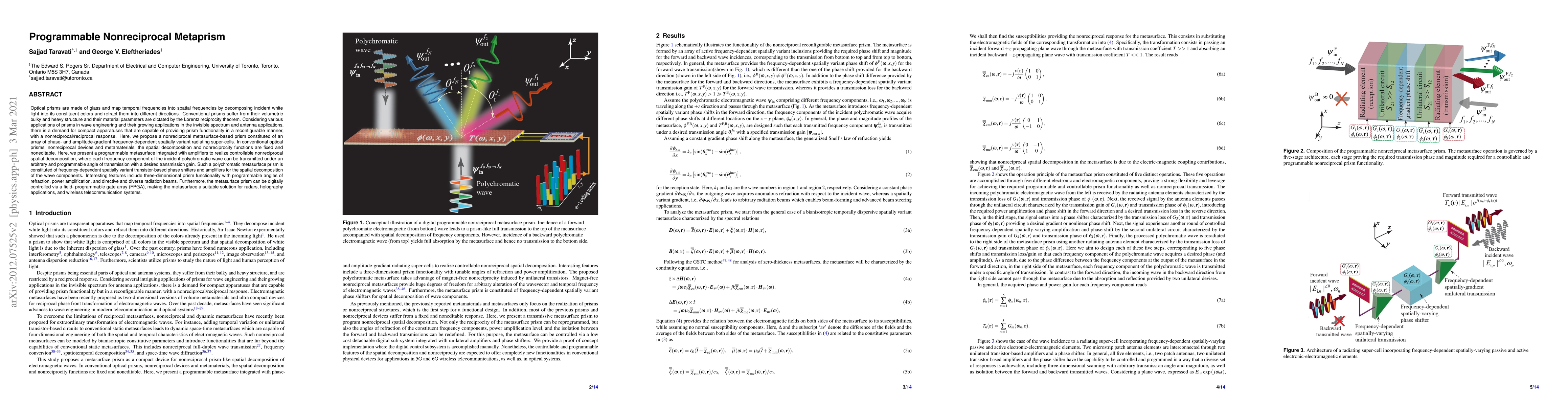 Researchers have created a programmable metasurface prism that can decompose white light into its colors and refract them at arbitrary angles with adjustable gain, offering potential applications in radar, holography, and wireless communication.
