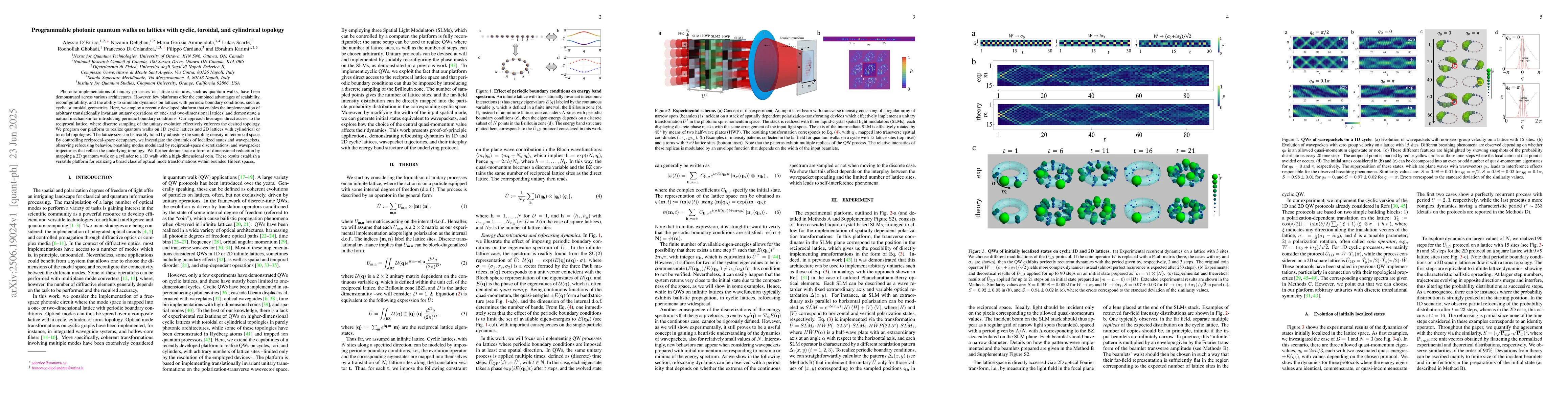 Photonic implementations of unitary processes on lattice structures, such as quantum walks, have been demonstrated across various architectures. However, few platforms offer the combined advantages of scalability, reconfigurability, and the ability to simulate dynamics on lattices with periodic boundary conditions, such as cyclic or toroidal geometries. Here, we employ a recently developed platform that enables the implementation of arbitrary translationally invariant unitary operations on one- and two-dimensional lattices, and demonstrate a natural mechanism for introducing periodic boundary conditions. Our approach leverages direct access to the reciprocal lattice, where discrete sampling of the unitary evolution effectively enforces the desired topology. We program our platform to realize quantum walks on 1D cyclic lattices and 2D lattices with cylindrical or toroidal topologies. The lattice size can be readily tuned by adjusting the sampling density in reciprocal space. By controlling reciprocal-space occupancy, we investigate the dynamics of localized states and wavepackets, observing refocusing behavior, breathing modes modulated by reciprocal-space discretizations, and wavepacket trajectories that reflect the underlying topology. We further demonstrate a form of dimensional reduction by mapping a 2D quantum walk on a cylinder to a 1D walk with a high-dimensional coin. These results establish a versatile platform for realizing a broad class of optical mode transformations within bounded Hilbert spaces.