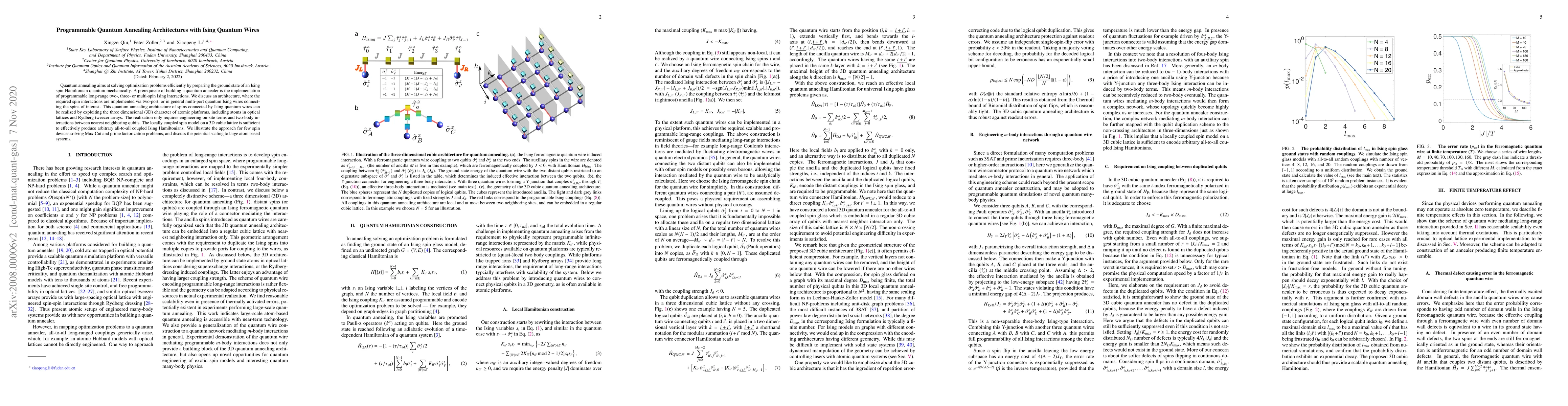 This paper proposes a programmable quantum annealing architecture using Ising quantum wires to implement long-range spin interactions, enabling efficient optimization problem solving. The architecture leverages 3D atomic platforms to achieve all-to-all coupling through a locally coupled spin model on a cubic lattice, demonstrating its potential for scaling to large systems.