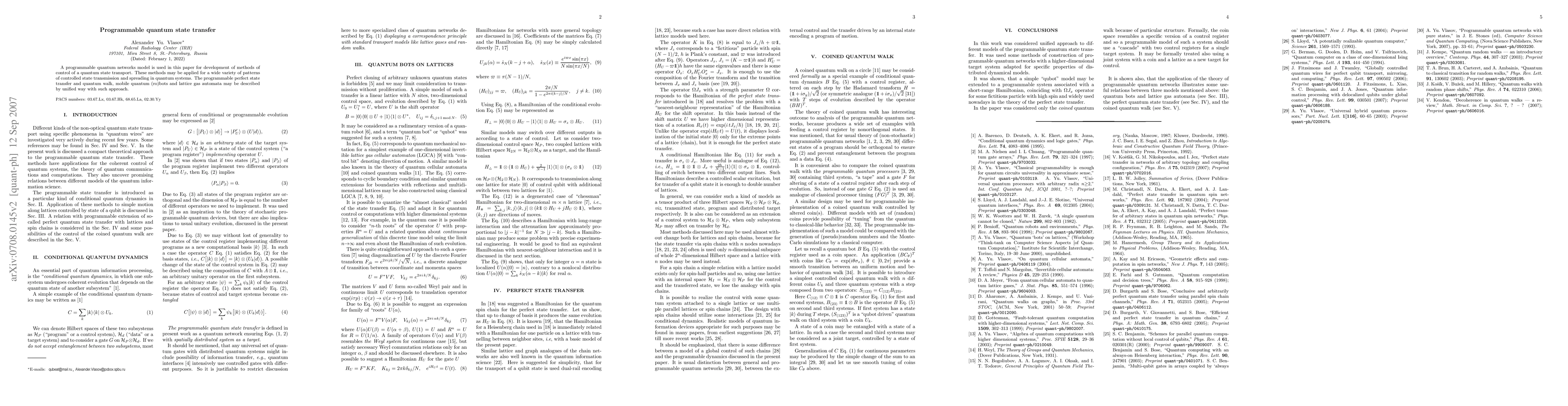 This paper develops a programmable quantum networks model to control quantum state transport, applicable to various quantum systems, including perfect state transfer, quantum walks, mobile quantum robots, and lattice gas automata. The approach provides a unified method for these diverse controlled state transmission patterns.