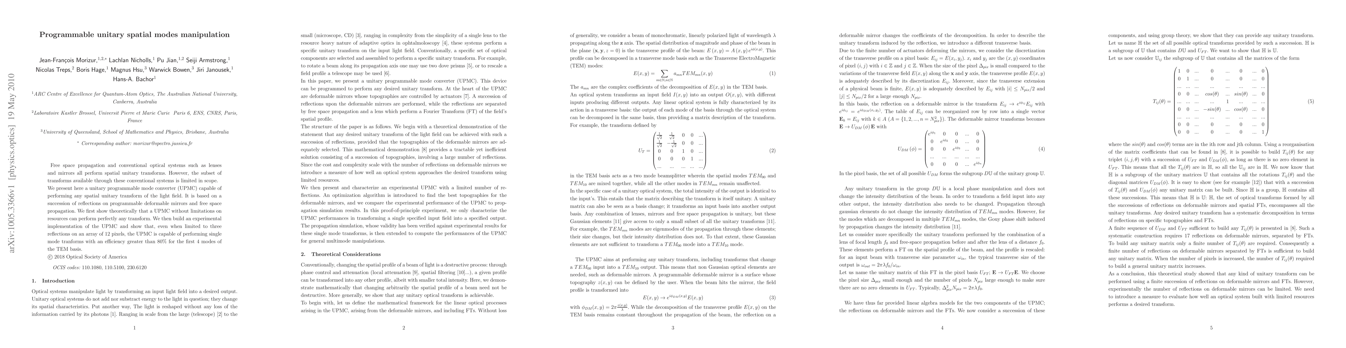 Researchers have developed a programmable unitary spatial modes manipulation device that can perform any spatial unitary transform on light fields, surpassing conventional optical systems.