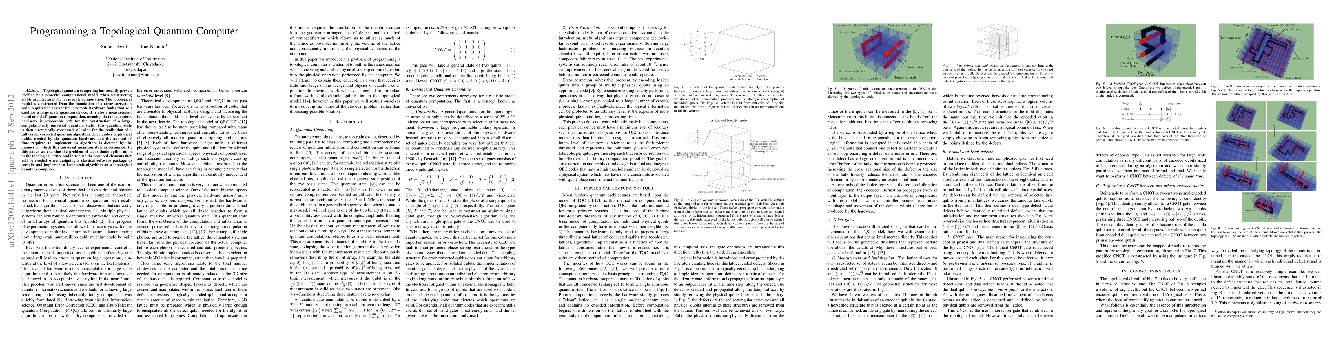 Topological quantum computing has recently proven itself to be a powerful computational model when constructing viable architectures for large scale computation. The topological model is constructed from the foundation of a error correction code, required to correct for inevitable hardware faults that will exist for a large scale quantum device. It is also a measurement based model of quantum computation, meaning that the quantum hardware is responsible only for the construction of a large, computationally universal quantum state. This quantum state is then strategically consumed, allowing for the realisation of a fully error corrected quantum algorithm. The number of physical qubits needed by the quantum hardware and the amount of time required to implement an algorithm is dictated by the manner in which this universal quantum state is consumed. In this paper we examine the problem of algorithmic optimisation in the topological lattice and introduce the required elements that will be needed when designing a classical software package to compile and implement a large scale algorithm on a topological quantum computer.