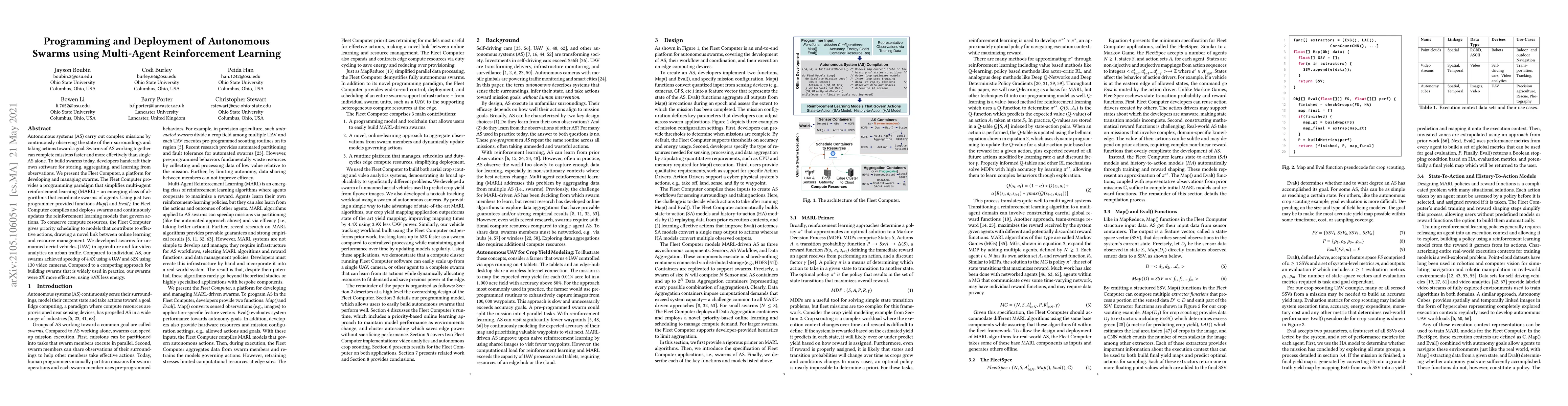 The Fleet Computer platform simplifies the development of autonomous swarms using multi-agent reinforcement learning by providing a programming paradigm with Map() and Eval() functions. Swarms achieved significant speedups and energy efficiency compared to individual agents and existing swarm-building methods.