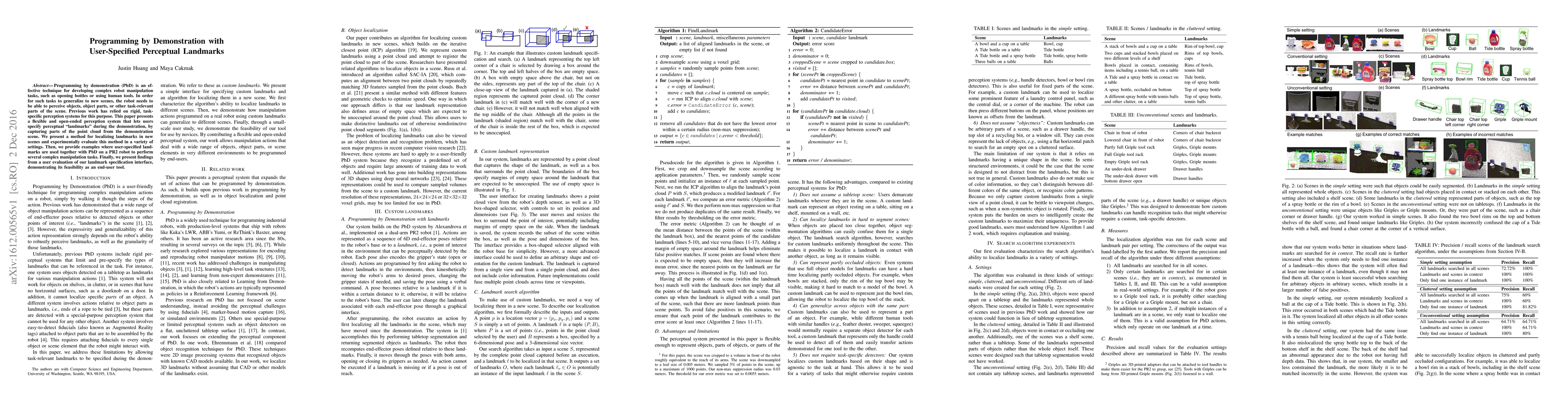 This paper introduces a flexible programming by demonstration (PbD) system that allows users to specify perceptual landmarks during demonstrations to enhance robot task generalization. The system captures and localizes these landmarks in new scenes, enabling complex manipulation tasks on a PR2 robot, and evaluates the usability of the landmark specification interface.