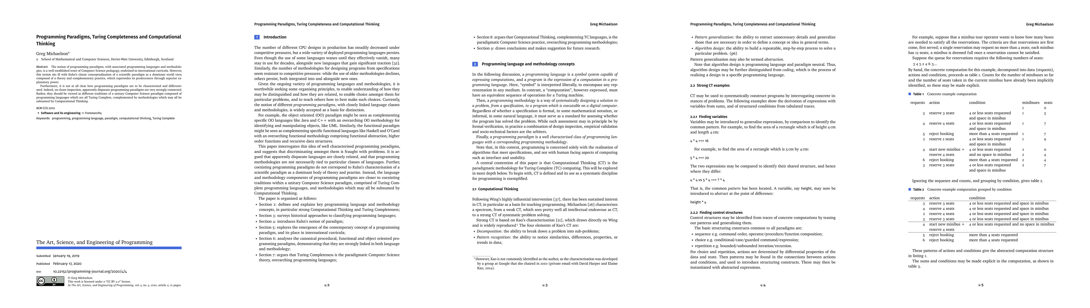 The notion of programming paradigms, with associated programming languages and methodologies, is a well established tenet of Computer Science pedagogy, enshrined in international curricula. However, this notion sits ill with Kuhn's classic conceptualisation of a scientific paradigm as a dominant world view, which supersedes its predecessors through superior explanatory power. Furthermore, it is not at all clear how programming paradigms are to be characterised and differentiated. Indeed, on closer inspection, apparently disparate programming paradigms are very strongly connected. Rather, they should be viewed as different traditions of a unitary Computer Science paradigm of Turing complete computation complemented by Computational Thinking.