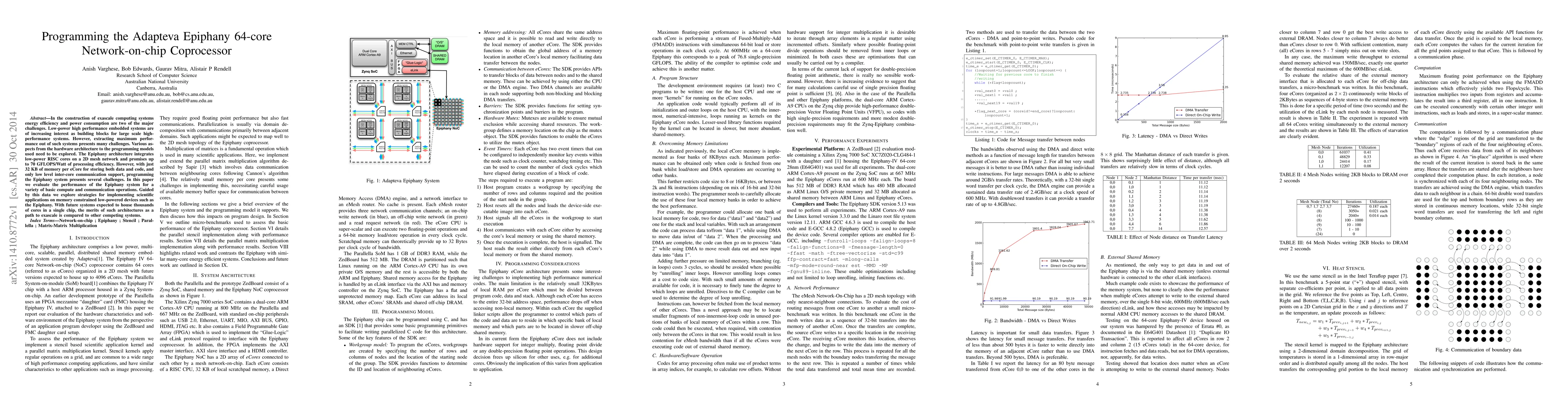 This paper evaluates the performance of the Epiphany 64-core network-on-chip coprocessor, focusing on its low-power efficiency and challenges in programming due to limited memory and communication support. The study proposes strategies for scientific applications on such memory-constrained systems and compares its potential for exascale computing against other architectures.
