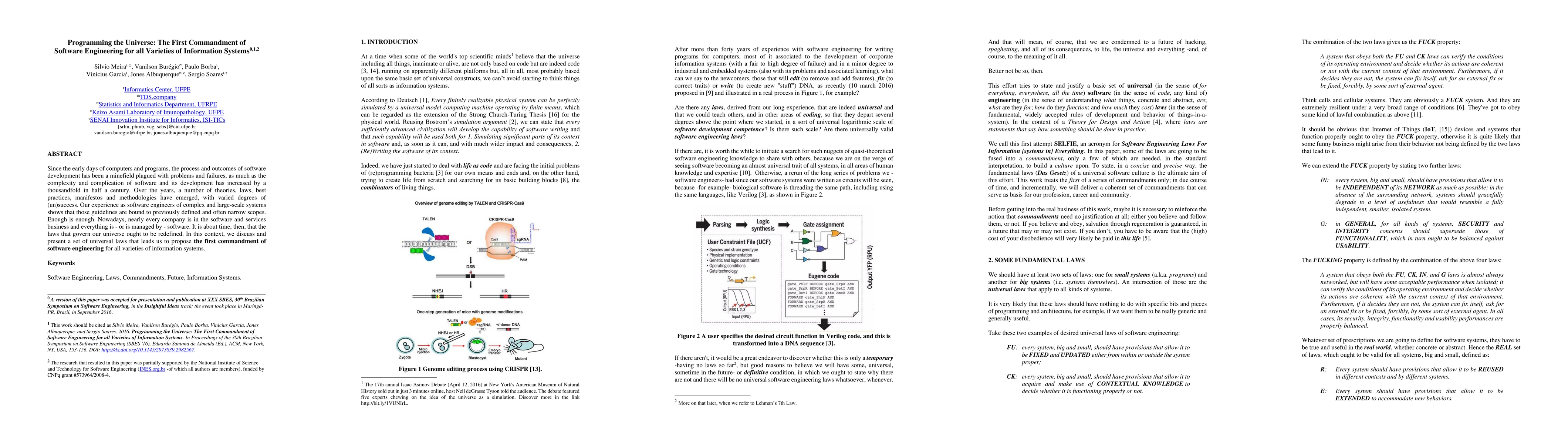 Since the early days of computers and programs, the process and outcomes of software development has been a minefield plagued with problems and failures, as much as the complexity and complication of software and its development has increased by a thousandfold in half a century. Over the years, a number of theories, laws, best practices, manifestos and methodologies have emerged, with varied degrees of (un)success. Our experience as software engineers of complex and large-scale systems shows that those guidelines are bound to previously defined and often narrow scopes. Enough is enough. Nowadays, nearly every company is in the software and services business and everything is - or is managed by - software. It is about time, then, that the laws that govern our universe ought to be redefined. In this context, we discuss and present a set of universal laws that leads us to propose the first commandment of software engineering for all varieties of information systems.