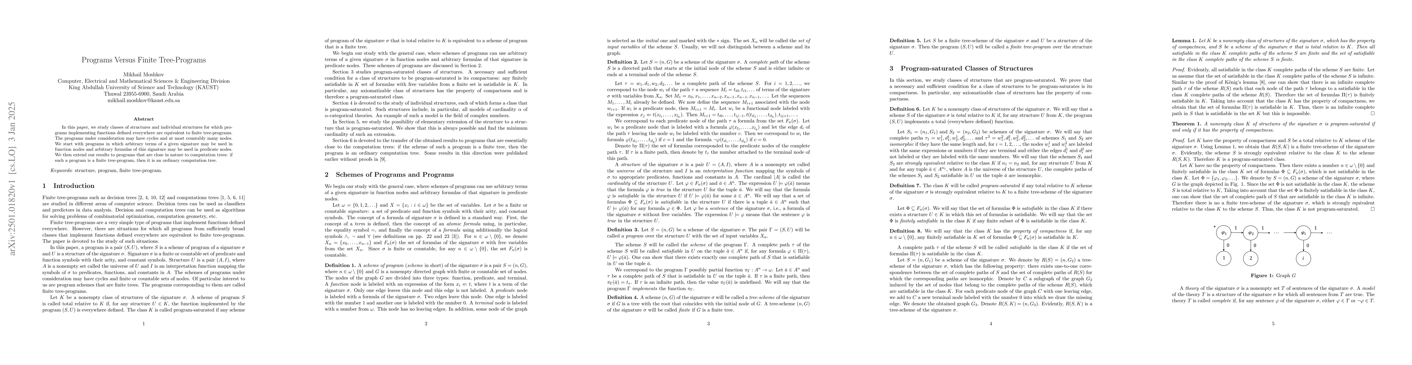 This paper examines the equivalence between general programs with cycles and finite tree-programs for specific classes of structures. It explores the conditions under which arbitrary term and formula usage in programs equates to finite tree-programs resembling computation trees.
