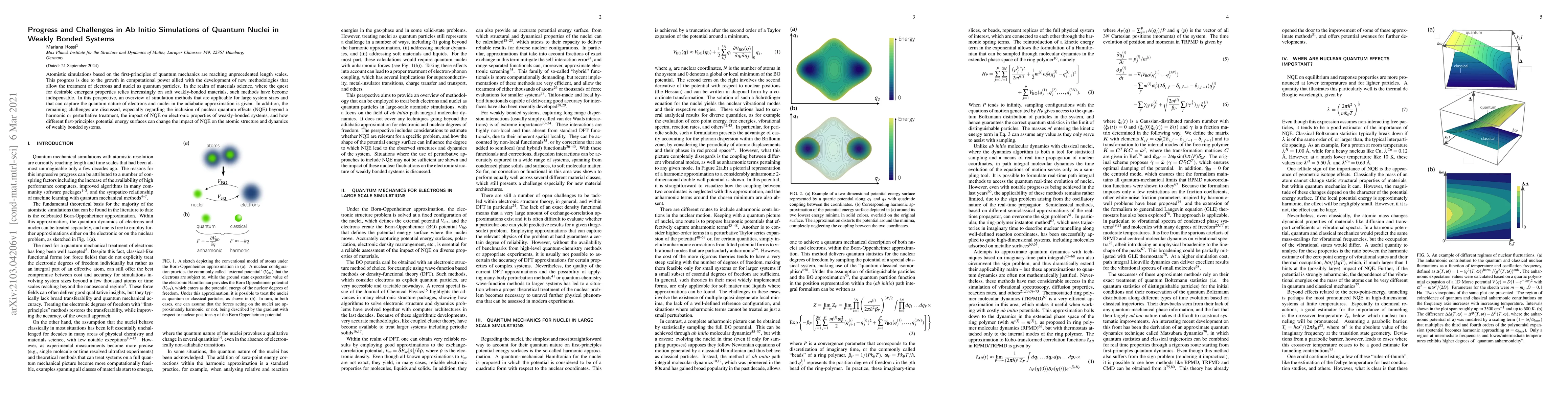 This paper reviews advancements in ab initio simulations for quantum nuclei in weakly bonded systems, highlighting new methodologies for large-scale atomistic simulations. It also discusses the challenges in incorporating nuclear quantum effects beyond simple harmonic treatments and their impact on electronic properties and dynamics in such systems.