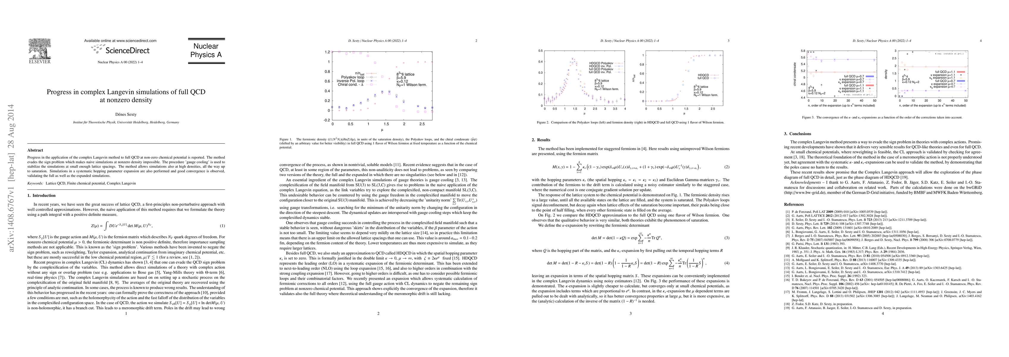 The complex Langevin method successfully simulates full QCD at nonzero density, overcoming the sign problem, and employs "gauge cooling" to stabilize simulations. Good convergence in systematic hopping parameter expansions validates the approach.