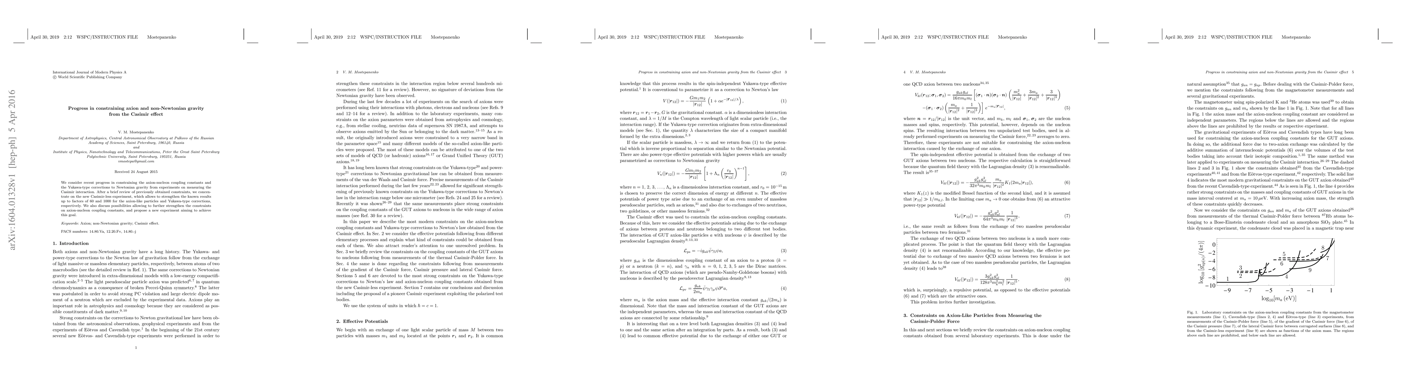 This paper reviews recent advancements in constraining axion-nucleon coupling constants and non-Newtonian gravity effects through Casimir effect experiments. A new Casimir-less experiment significantly strengthens existing constraints, up to 60 times for axion-like particles and 1000 times for Yukawa-type corrections, and proposes further experimental improvements.