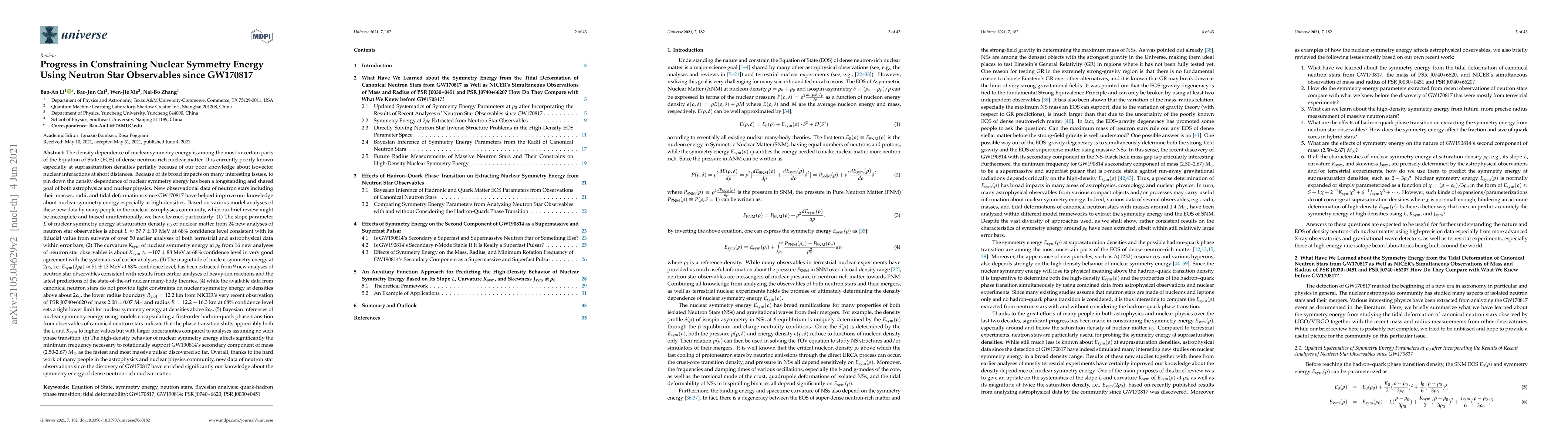 New observational data of neutron stars since GW170817 have helped improve our knowledge about nuclear symmetry energy especially at high densities. We have learned particularly: (1) The slope parameter $L$ of nuclear symmetry energy at saturation density $\rho_0$ of nuclear matter from 24 new analyses is about $L\approx 57.7\pm 19$ MeV at 68\% confidence level consistent with its fiducial value, (2) The curvature $K_{\rm{sym}}$ from 16 new analyses is about $K_{\rm{sym}}\approx -107\pm 88$ MeV, (3) The magnitude of nuclear symmetry energy at $2\rho_0$, i.e. $E_{\rm{sym}}(2\rho_0)\approx 51\pm 13$ MeV at 68\% confidence level, has been extracted from 9 new analyses of neutron star observables consistent with results from earlier analyses of heavy-ion reactions and the latest predictions of the state-of-the-art nuclear many-body theories, (4) while the available data from canonical neutron stars do not provide tight constraints on nuclear symmetry energy at densities above about $2\rho_0$, the lower radius boundary $R_{2.01}=12.2$ km from NICER's very recent observation of PSR J0740+6620 of mass $2.08\pm 0.07$ $M_{\odot}$ and radius $R=12.2-16.3$ km at 68\% confidence level sets a tight lower limit for nuclear symmetry energy at densities above $2\rho_0$, (5) Bayesian inferences of nuclear symmetry energy using models encapsulating a first-order hadron-quark phase transition from observables of canonical neutron stars indicate that the phase transition shift appreciably both the $L$ and $K_{\rm{sym}}$ to higher values but with larger uncertaintie , (6) The high-density behavior of nuclear symmetry energy affects significantly the minimum frequency necessary to rotationally support GW190814's secondary component of mass (2.50-2.67) $M_{\odot}$ as the fastest and most massive pulsar discovered so far.