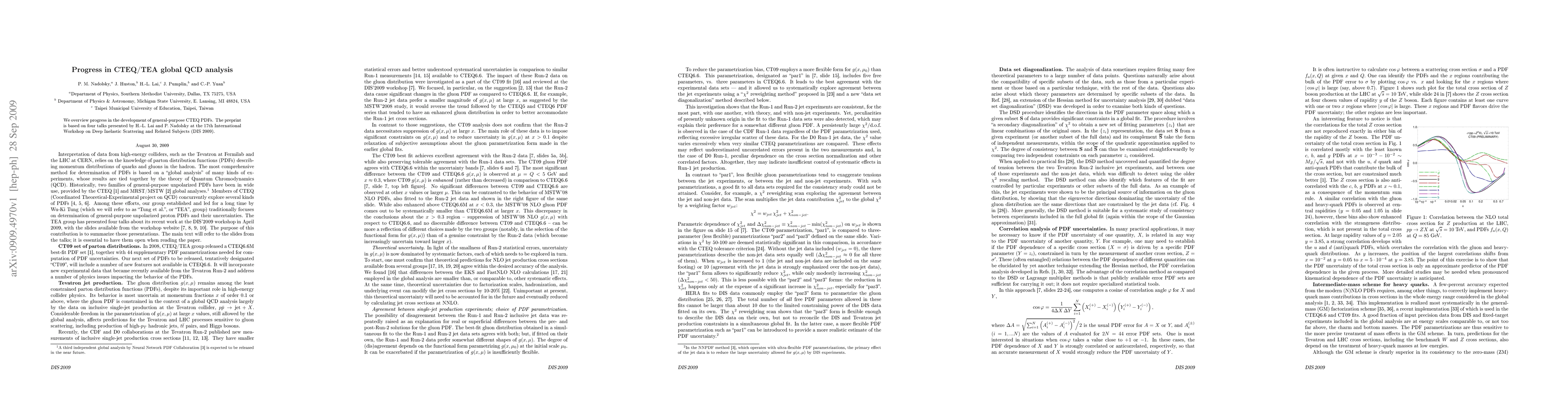 This paper reviews advancements in the CTEQ/TEA global analysis of Quantum Chromodynamics (QCD) parton distribution functions (PDFs), highlighting improvements and developments presented by H.-L. Lai and P. Nadolsky at the 2009 DIS workshop. The focus is on the progress made in creating general-purpose CTEQ PDFs.
