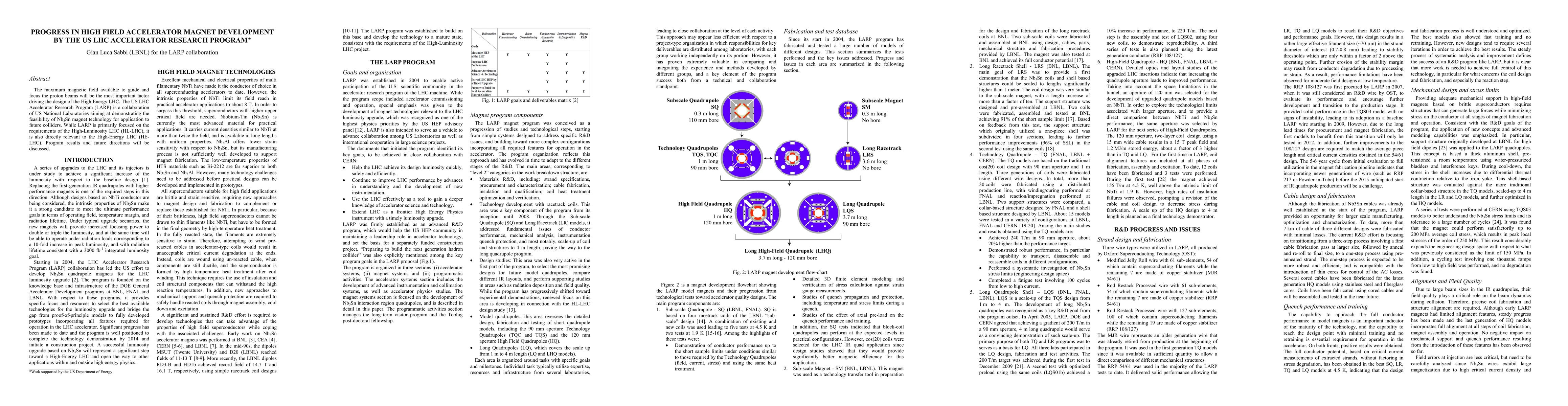 The maximum magnetic field available to guide and focus the proton beams will be the most important factor driving the design of the High Energy LHC. The US LHC Accelerator Research Program (LARP) is a collaboration of US National Laboratories aiming at demonstrating the feasibility of Nb3Sn magnet technology for application to future colliders. While LARP is primarily focused on the requirements of the High-Luminosity LHC (HL-LHC), it is also directly relevant to the High-Energy LHC (HE-LHC). Program results and future directions will be discussed.