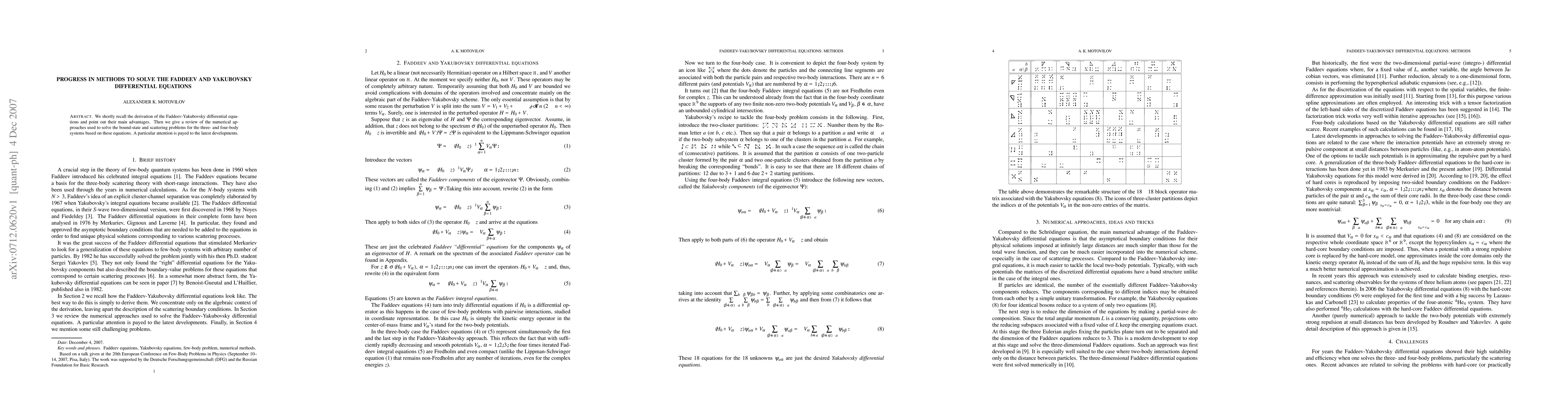 This paper reviews numerical methods for solving the Faddeev-Yakubovsky differential equations, highlighting recent advancements in addressing bound-state and scattering problems for three- and four-body systems. It emphasizes the latest developments in these approaches.