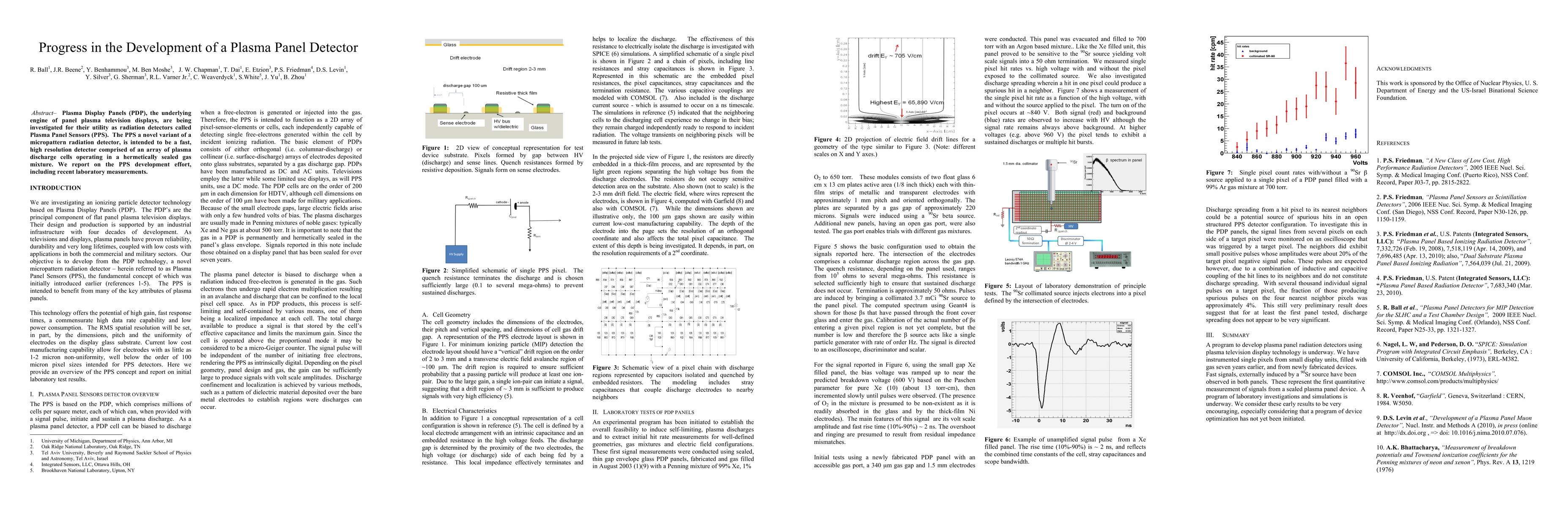 Plasma Display Panels (PDP), the underlying engine of panel plasma television displays, are being investigated for their utility as radiation detectors called Plasma Panel Sensors (PPS). The PPS a novel variant of a micropattern radiation detector, is intended to be a fast, high resolution detector comprised of an array of plasma discharge cells operating in a hermetically sealed gas mixture. We report on the PPS development effort, including recent laboratory measurements.