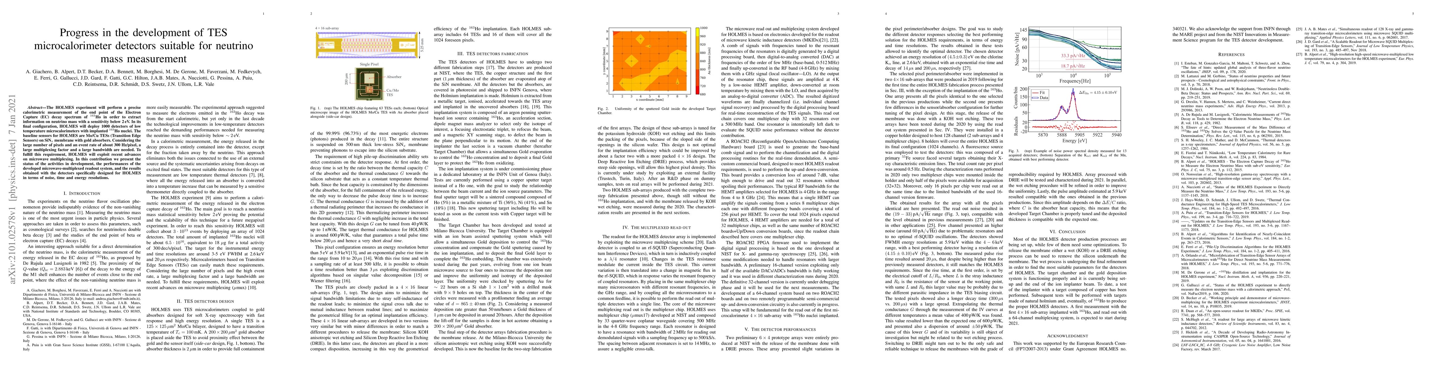 The HOLMES experiment will perform a precise calorimetric measurement of the end point of the Electron Capture (EC) decay spectrum of 163Ho in order to extract information on neutrino mass with a sensitivity below 2 eV. In its final configuration, HOLMES will deploy 1000 detectors of low-temperature microcalorimeters with implanted 163Ho nuclei. The baseline sensors for HOLMES are Mo/Cu TESs (Transition Edge Sensors) on SiNx membrane with gold absorbers. Considering the large number of pixels and an event rate of about 300 Hz/pixel, a large multiplexing factor and a large bandwidth are needed. To fulfill this requirement, HOLMES will exploit recent advances in microwave multiplexing. In this contribution, we present the status of the activities in development, the performances of the developed microwave-multiplexed readout system, and the results obtained with the detectors specifically designed for HOLMES in terms of noise, time, and energy resolutions