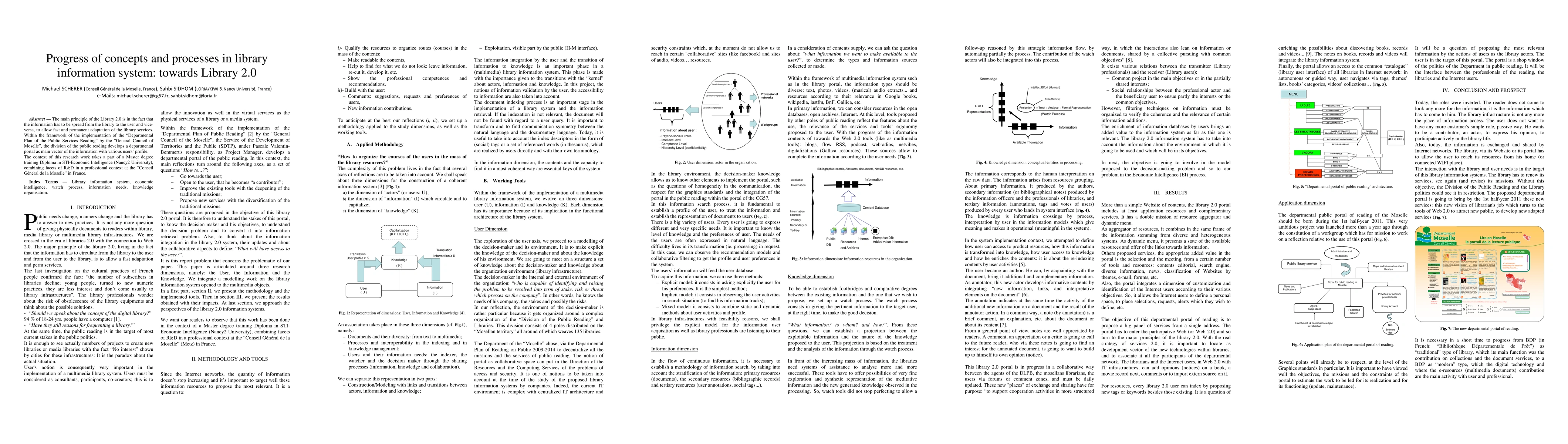 This paper explores the evolution of library information systems towards Library 2.0, emphasizing bidirectional information flow to enhance library services. The study, part of a Master's program in STI-Economic Intelligence, examines the implementation of a departmental portal in Moselle, France, to facilitate user interaction and service adaptation.