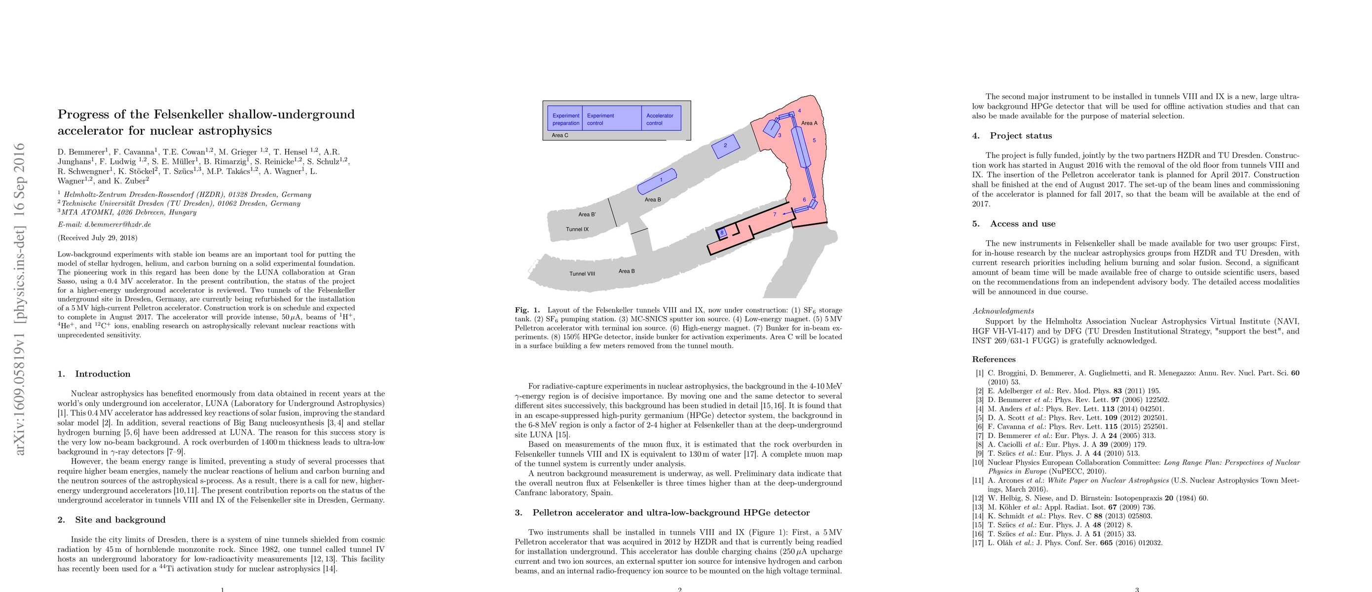 The Felsenkeller project aims to install a 5 MV Pelletron accelerator in Dresden, Germany, to enhance nuclear astrophysics research with stable ion beams. Expected completion in August 2017, the accelerator will deliver intense beams of 1H+, 4He+, and 12C+ ions for studying stellar nuclear burning processes.