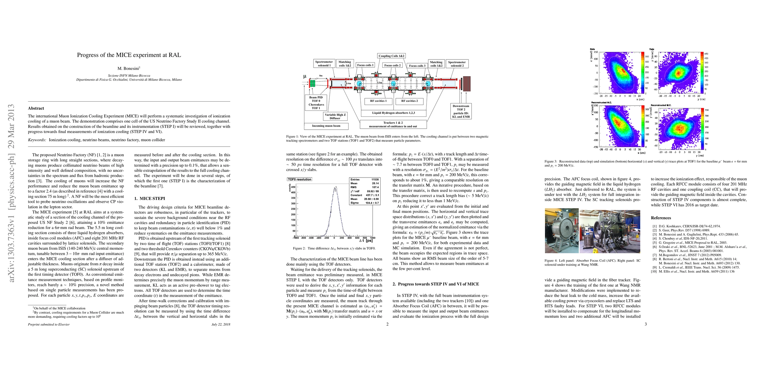 The international Muon Ionization Cooling Experiment (MICE) will perform a systematic investigation of ionization cooling of a muon beam. The demonstration comprises one cell of the US Neutrino Factory Study II cooling channel. Results obtained on the construction of the beamline and its instrumentation (STEP I) will be reviewed, together with progress towards final measurements of ionization cooling (STEP IV and VI).