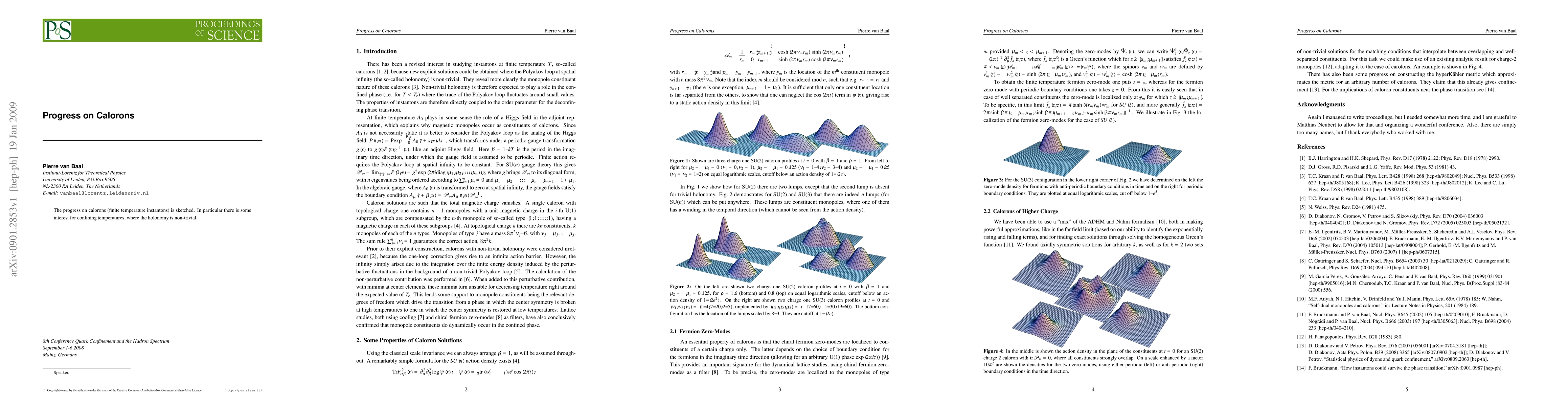 The progress on calorons (finite temperature instantons) is sketched. In particular there is some interest for confining temperatures, where the holonomy is non-trivial.
