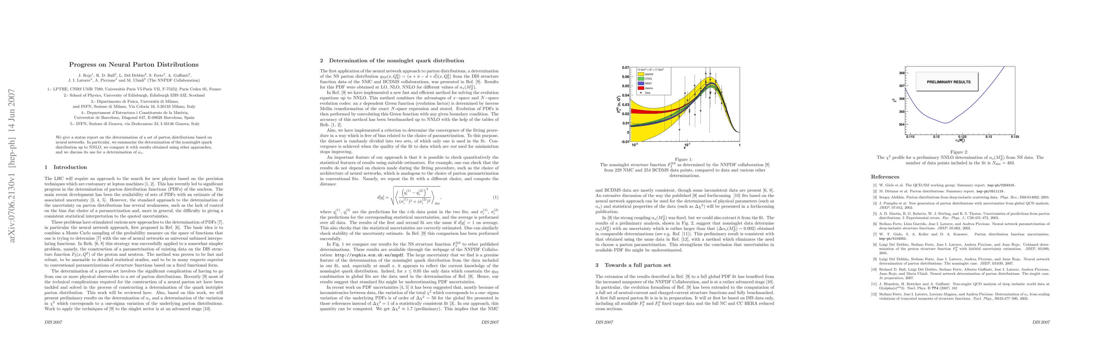 We give a status report on the determination of a set of parton distributions based on neural networks. In particular, we summarize the determination of the nonsinglet quark distribution up to NNLO, we compare it with results obtained using other approaches, and we discuss its use for a determination of $\alpha_s$.