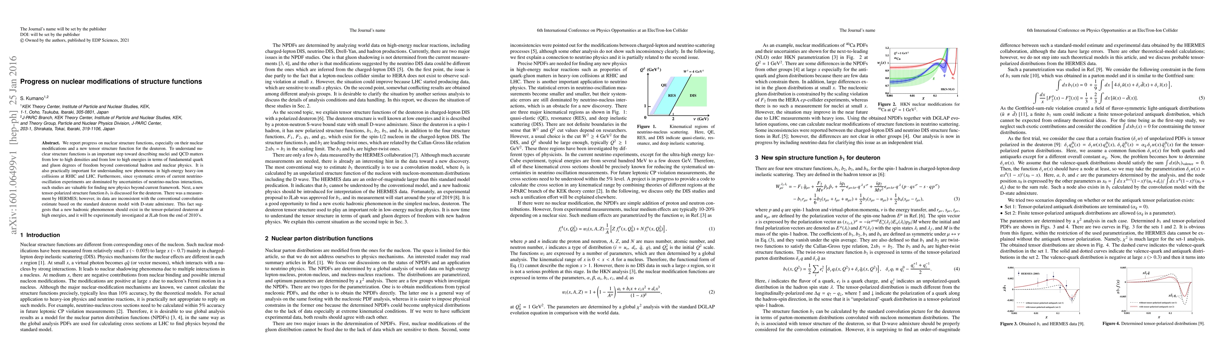 Researchers have made progress in understanding nuclear structure functions, particularly their modifications and a new tensor structure function for the deuteron, which could help describe high-energy phenomena in particle collisions and neutrino-nucleus interactions.
