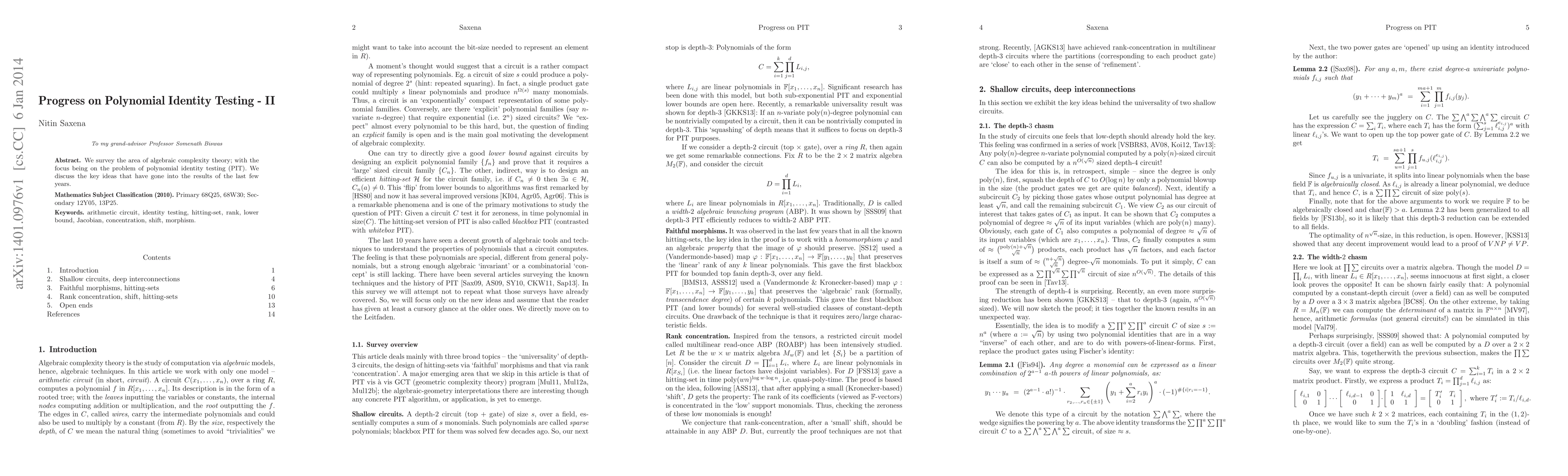 Researchers have made progress in polynomial identity testing (PIT), a problem that determines whether a given polynomial is an identity, using key ideas from algebraic complexity theory. The study highlights recent findings and implications for understanding computational complexity.