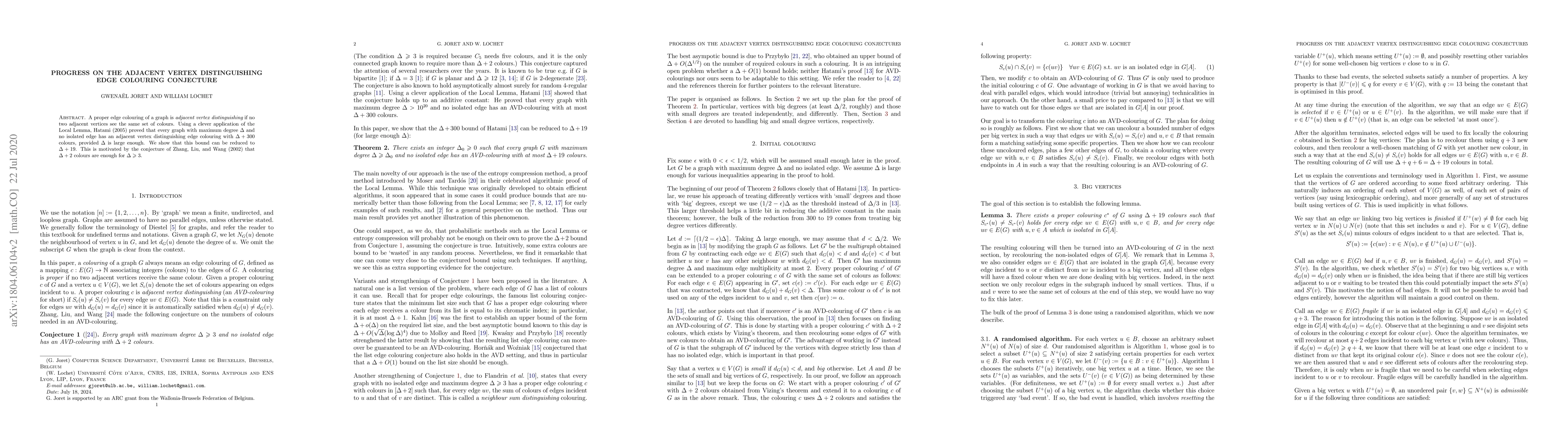 This paper reduces the number of colours needed for an adjacent vertex distinguishing edge colouring of a graph with maximum degree $\Delta$ to $\Delta + 19$, improving upon Hatami's earlier bound of $\Delta + 300$ and supporting the conjecture that $\Delta + 2$ colours suffice for $\Delta \geq 3$.