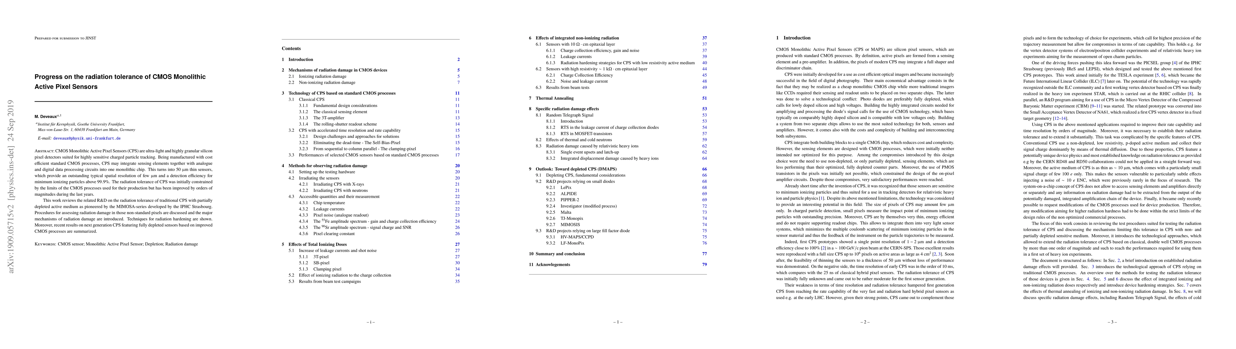 This paper reviews advancements in the radiation tolerance of CMOS Monolithic Active Pixel Sensors (CPS), highlighting improvements in traditional partially depleted CPS and introducing next-generation fully depleted sensors based on enhanced CMOS processes. Techniques for assessing and mitigating radiation damage are discussed alongside recent results showcasing significant progress.