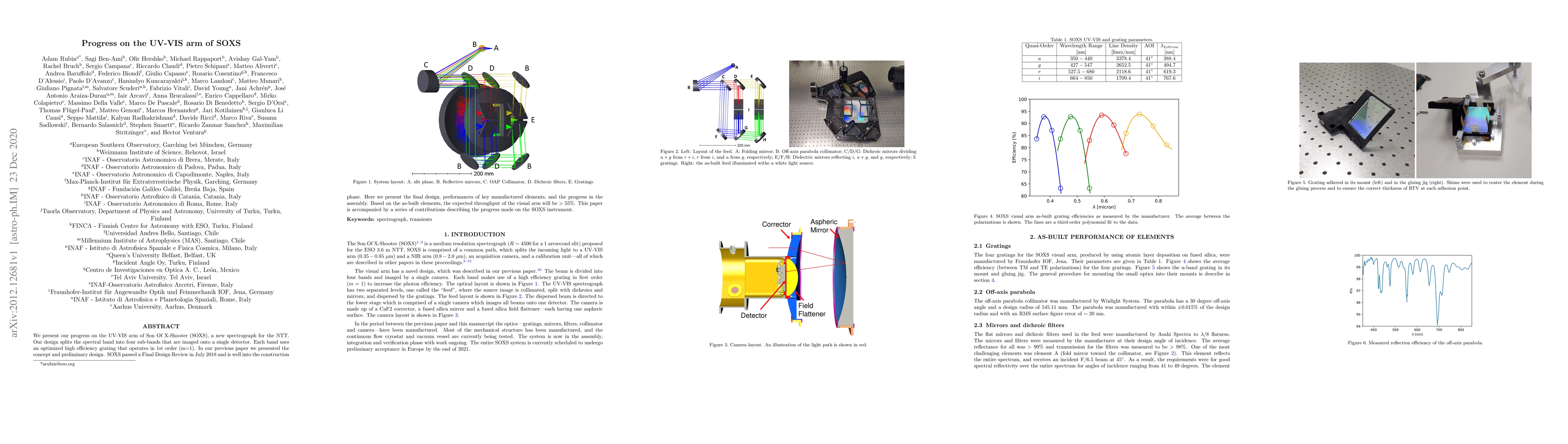 We present our progress on the UV-VIS arm of Son Of X-Shooter (SOXS), a new spectrograph for the NTT. Our design splits the spectral band into four sub-bands that are imaged onto a single detector. Each band uses an optimized high efficiency grating that operates in 1st order (m=1). In our previous paper we presented the concept and preliminary design. SOXS passed a Final Design Review in July 2018 and is well into the construction phase. Here we present the final design, performances of key manufactured elements, and the progress in the assembly. Based on the as-built elements, the expected throughput of the visual arm will be >55%. This paper is accompanied by a series of contributions describing the progress made on the SOXS instrument.