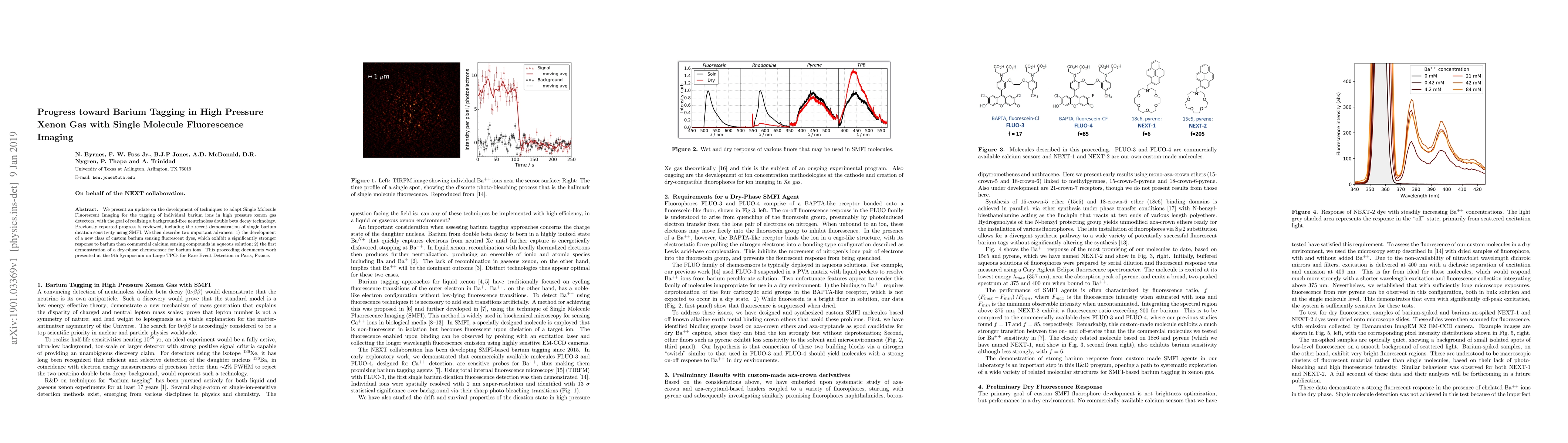 We present an update on the development of techniques to adapt Single Molecule Fluorescent Imaging for the tagging of individual barium ions in high pressure xenon gas detectors, with the goal of realizing a background-free neutrinoless double beta decay technology. Previously reported progress is reviewed, including the recent demonstration of single barium dication sensitivity using SMFI. We then describe two important advances: 1) the development of a new class of custom barium sensing fluorescent dyes, which exhibit a significantly stronger response to barium than commercial calcium sensing compounds in aqueous solution; 2) the first demonstration of a dry-phase chemosensor for barium ions. This proceeding documents work presented at the 9th Symposium on Large TPCs for Rare Event Detection in Paris, France.