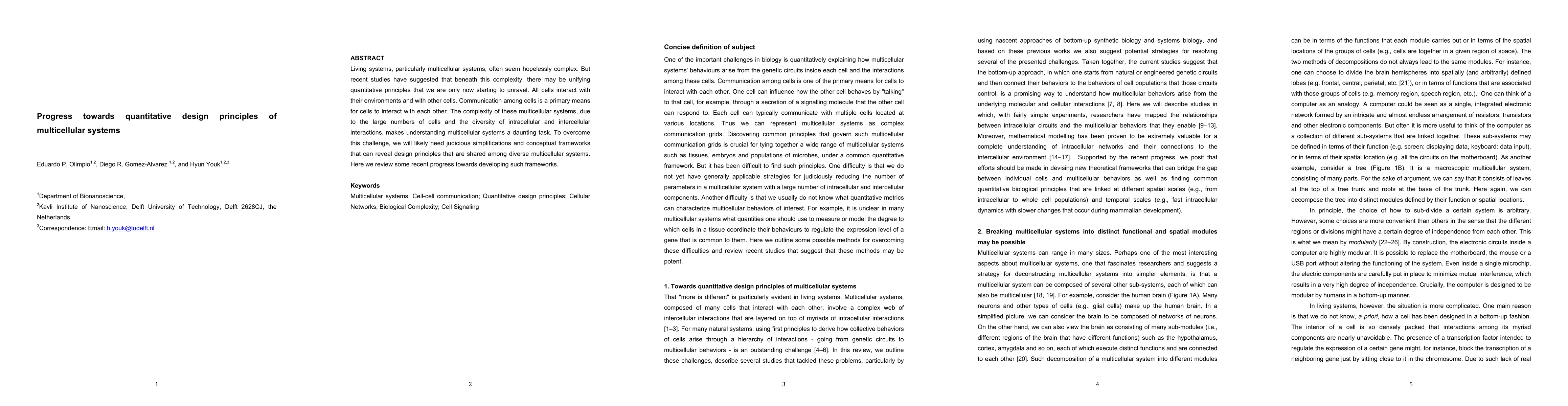 This paper explores recent advancements in identifying quantitative design principles underlying the complexity of multicellular systems, emphasizing the importance of communication among cells and the need for conceptual frameworks to simplify and understand these interactions. It reviews progress in developing these frameworks to reveal shared design principles across diverse multicellular systems.