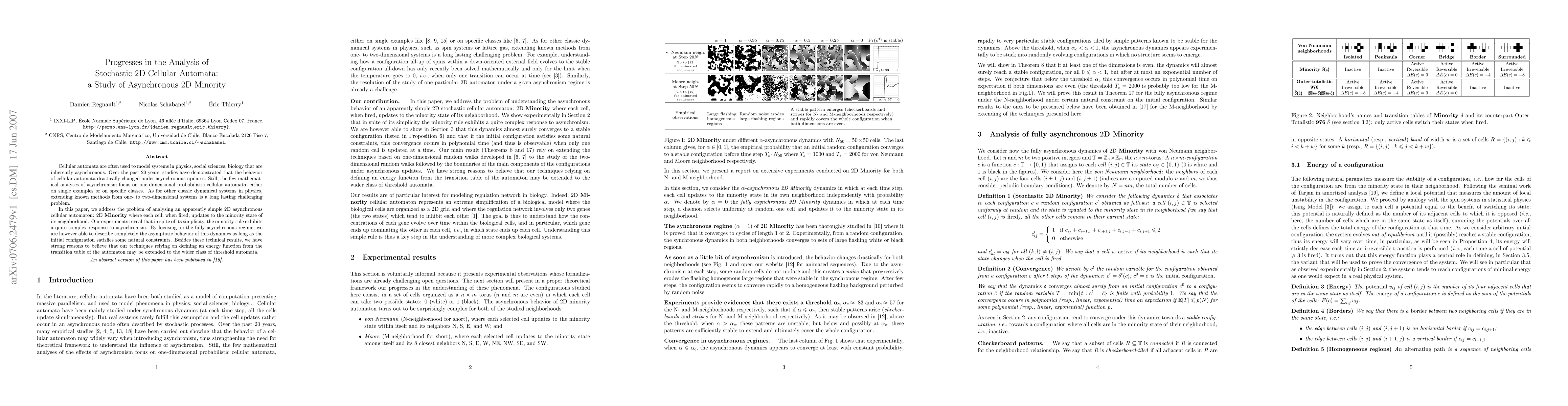 This paper investigates the complex behavior of a 2D asynchronous cellular automaton known as 2D Minority, where each cell updates to the minority state of its neighborhood. Despite its simplicity, the study reveals intricate dynamics under asynchronous updates, and the authors describe the asymptotic behavior in the fully asynchronous regime, suggesting their techniques may extend to broader classes of threshold automata.