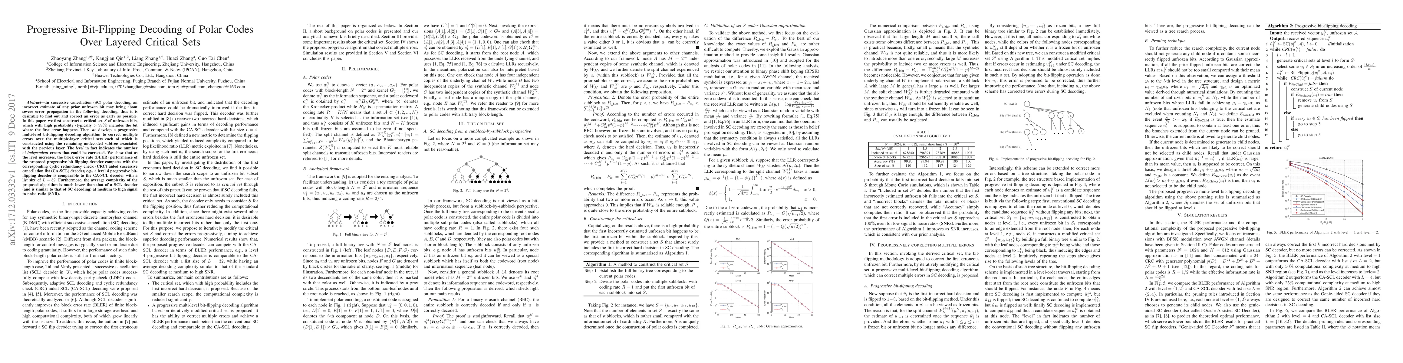 This paper proposes a progressive multi-level bit-flipping decoding algorithm to correct errors in polar codes by identifying and correcting errors early using layered critical sets. The method shows competitive block error rate performance compared to CRC-aided successive cancellation list decoding, while maintaining lower average complexity.